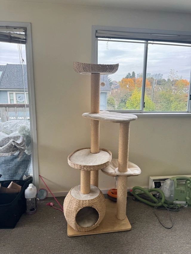 This cat tree goes on retail for $320+ and it’s well taken care of. My cat only uses the bottom scratcher. Dimensions are 58 x 48 x 151.8 cm Payment: Cash accepted