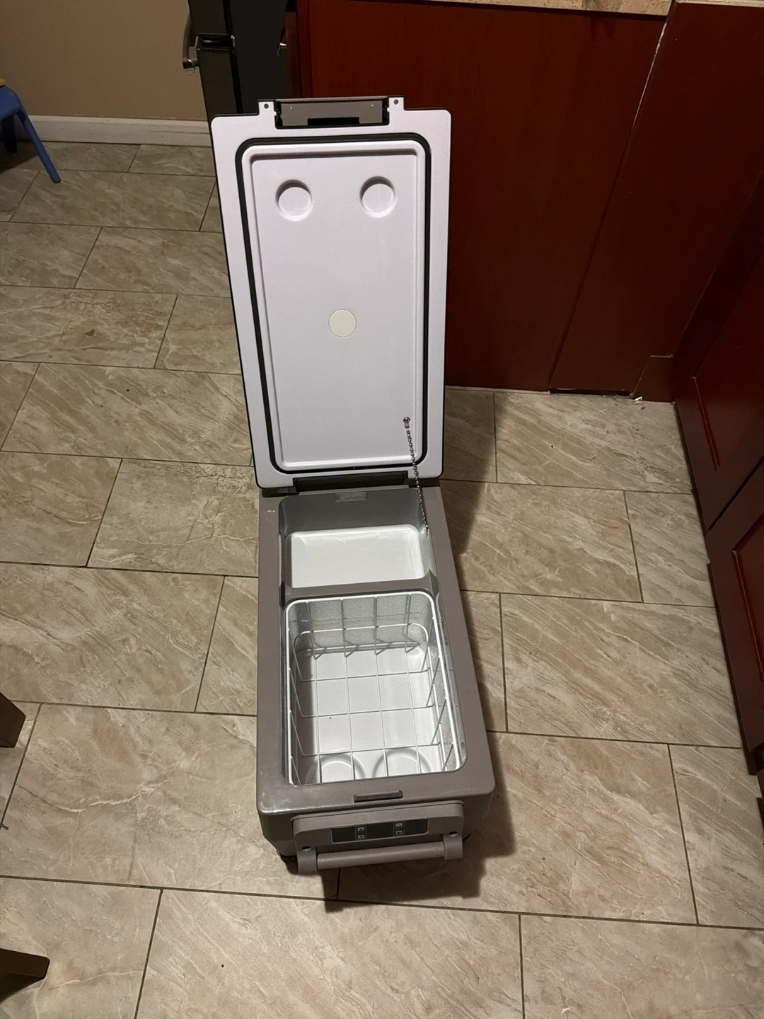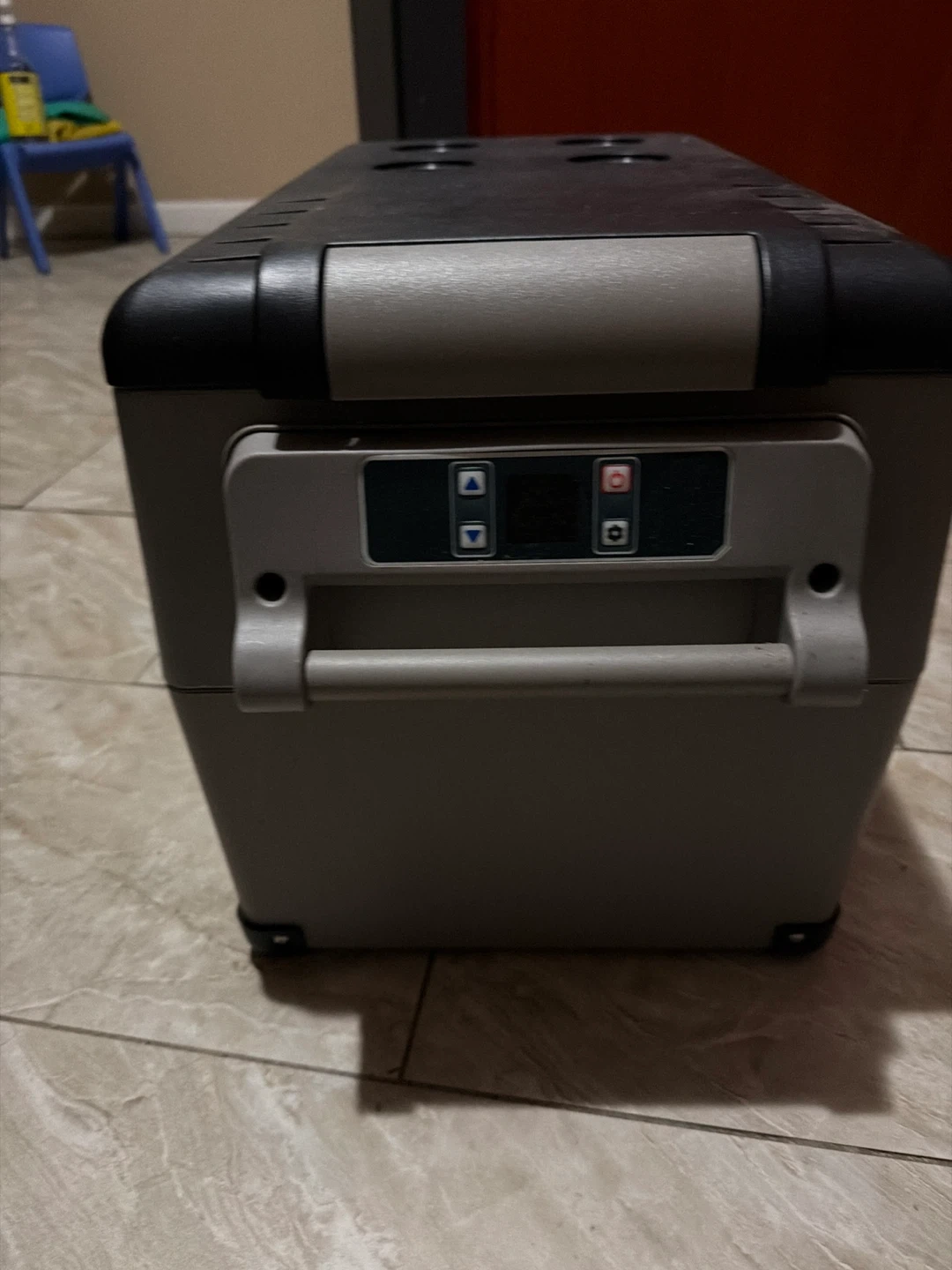 Selling a portable car refrigerator/freezer. It features a black and gray design with an Energy Guide sticker. It’s perfect for keeping your items cool on the go!