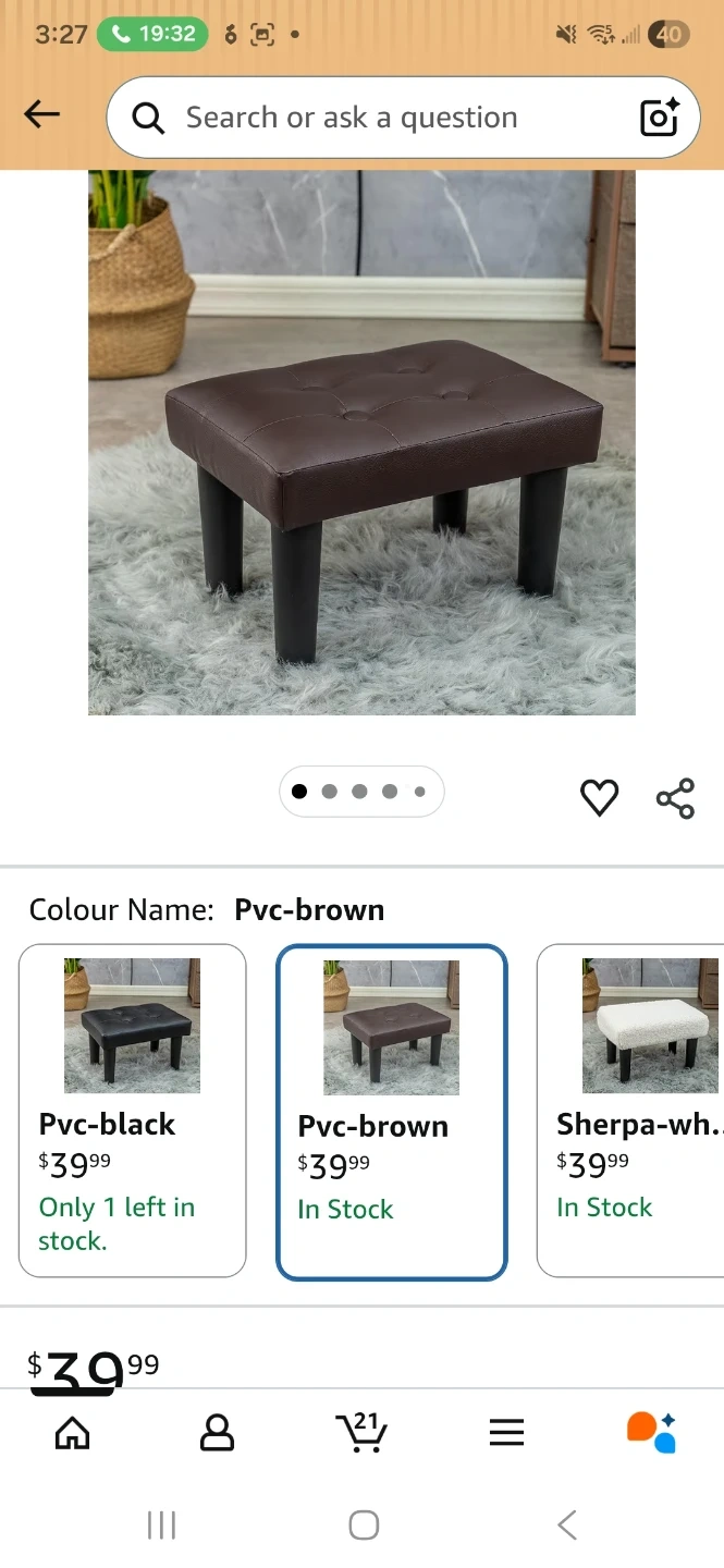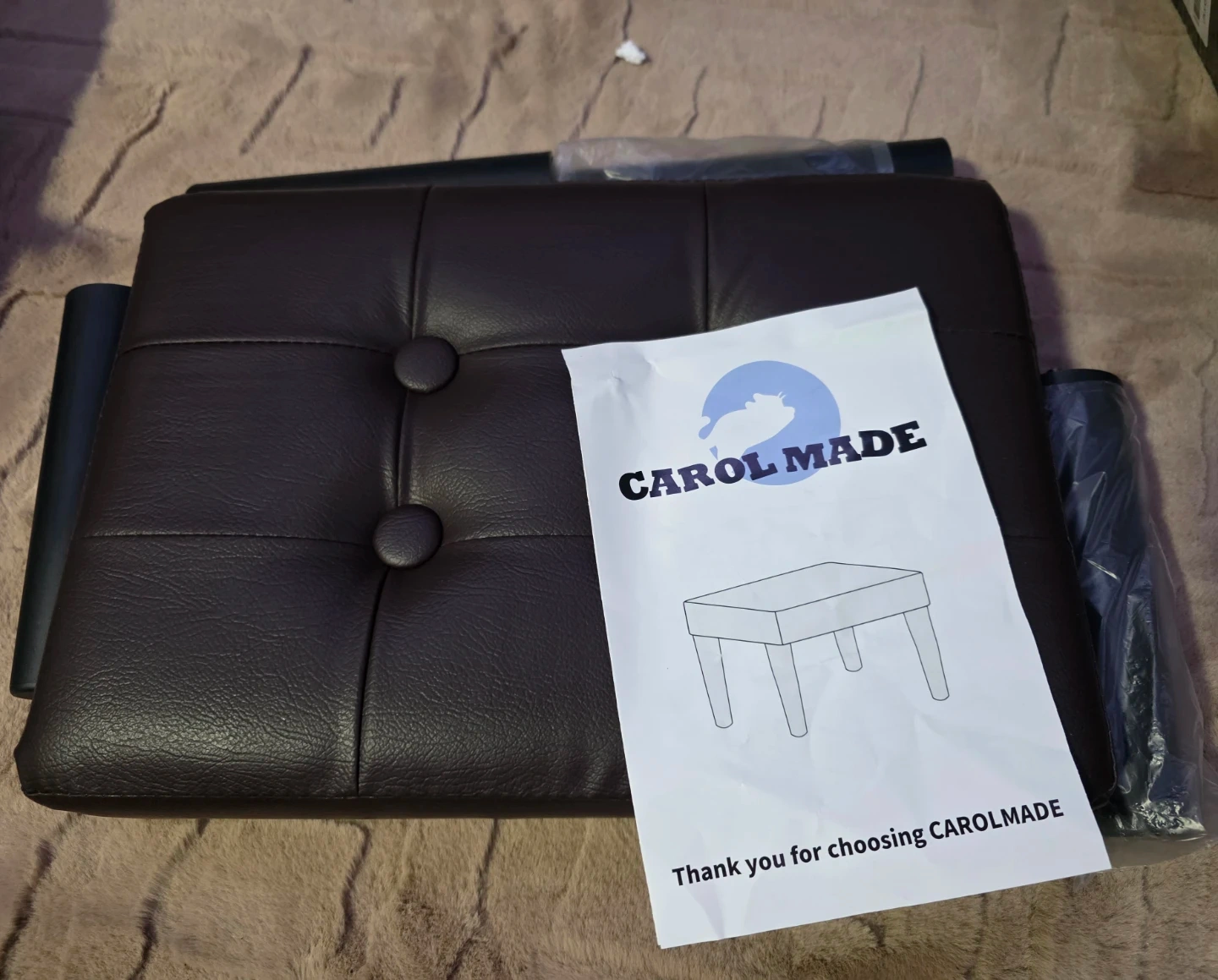 This CAROL MADE ottoman is upholstered in brown faux leather with a tufted top. It's perfect for resting your feet after a long day. Assembly is required, and all parts are included.