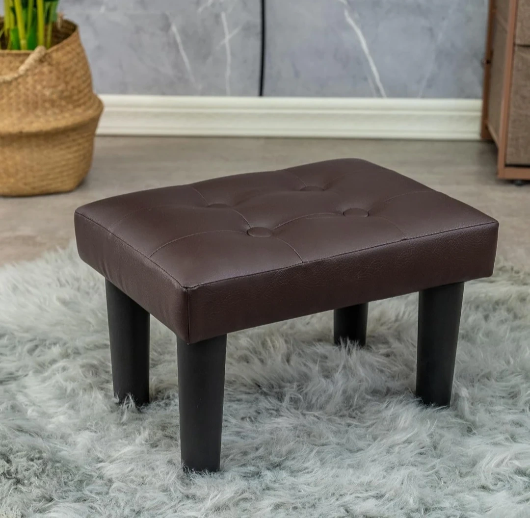 CAROL MADE Tufted Ottoman Footrest - Brown Faux Leather