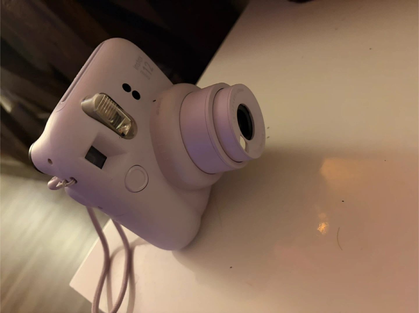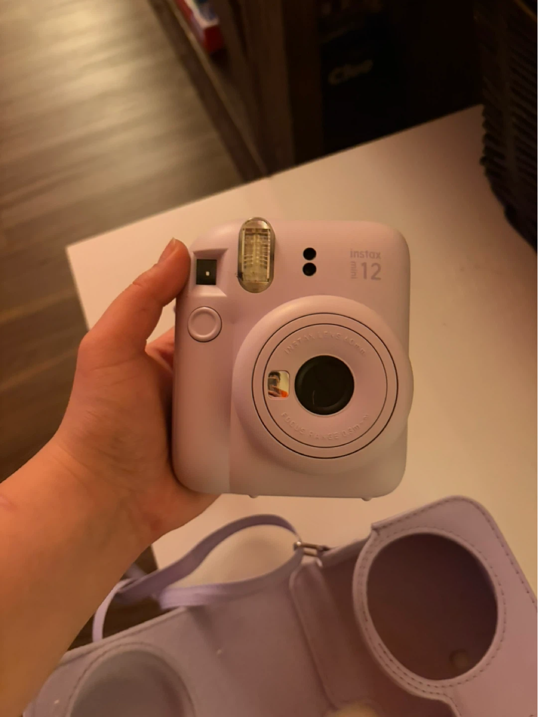 Fujifilm Instax Mini 12 instant camera in a lovely lavender colour. It's in great condition and comes with a matching protective case. This camera makes instant memories!