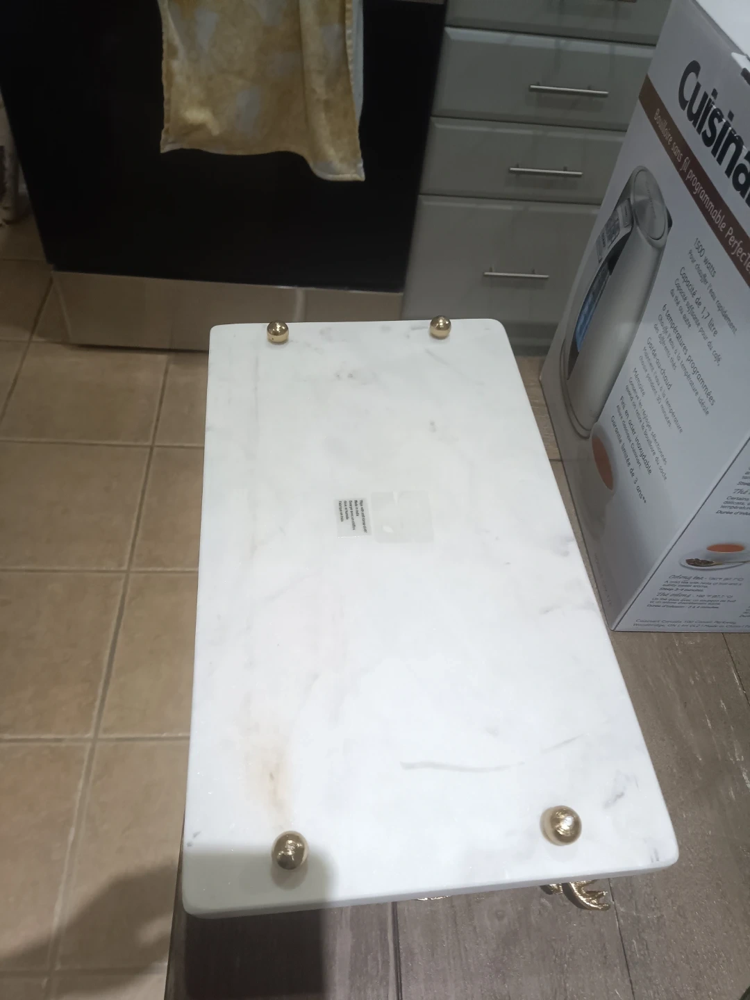 Beautiful white marble tray with decorative golden deer handles. Perfect for serving appetizers or displaying objects. Marble is durable and easy to clean. Ideal for gatherings or as an elegant decorative accent.