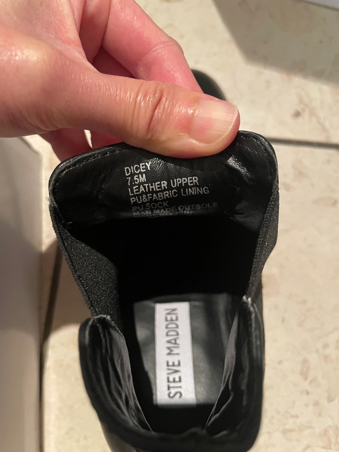 Buy & SellSteve Madden Chelsea Boots Size 7.5Steve Madden Chelsea Boots Size 7.5$12New, tried on once but never worn outside. Size 7.5ConditionNewSize7.5BrandSteven Madden WHERE TO MEETNear Finch StationView MapSELLERLouisaWillowdale30032 reviews5 chats·1 favorites·49 viewsSEND CHAT TO SELLERHi Louisa! I’m interested in your listing.Hi Louisa! I’m interested in your listing.Get the Karrot app to chatSign In to chat