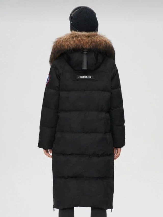 Stay warm and stylish with this Bosideng down parka, featuring a luxurious fur-trimmed hood and a flattering long silhouette; this used coat is in good condition and ready to take on the winter weather. Features: - High-quality down insulation for maximum warmth - Removable fur-trimmed hood for versatile styling - Durable, water-resistant outer shell - Full-length design for complete coverage Without fur trim