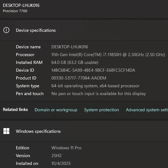 2021/Dell Precision 7760/i7-11th/64GB/1TB-SSD Win11Pro, 240W ⚡️