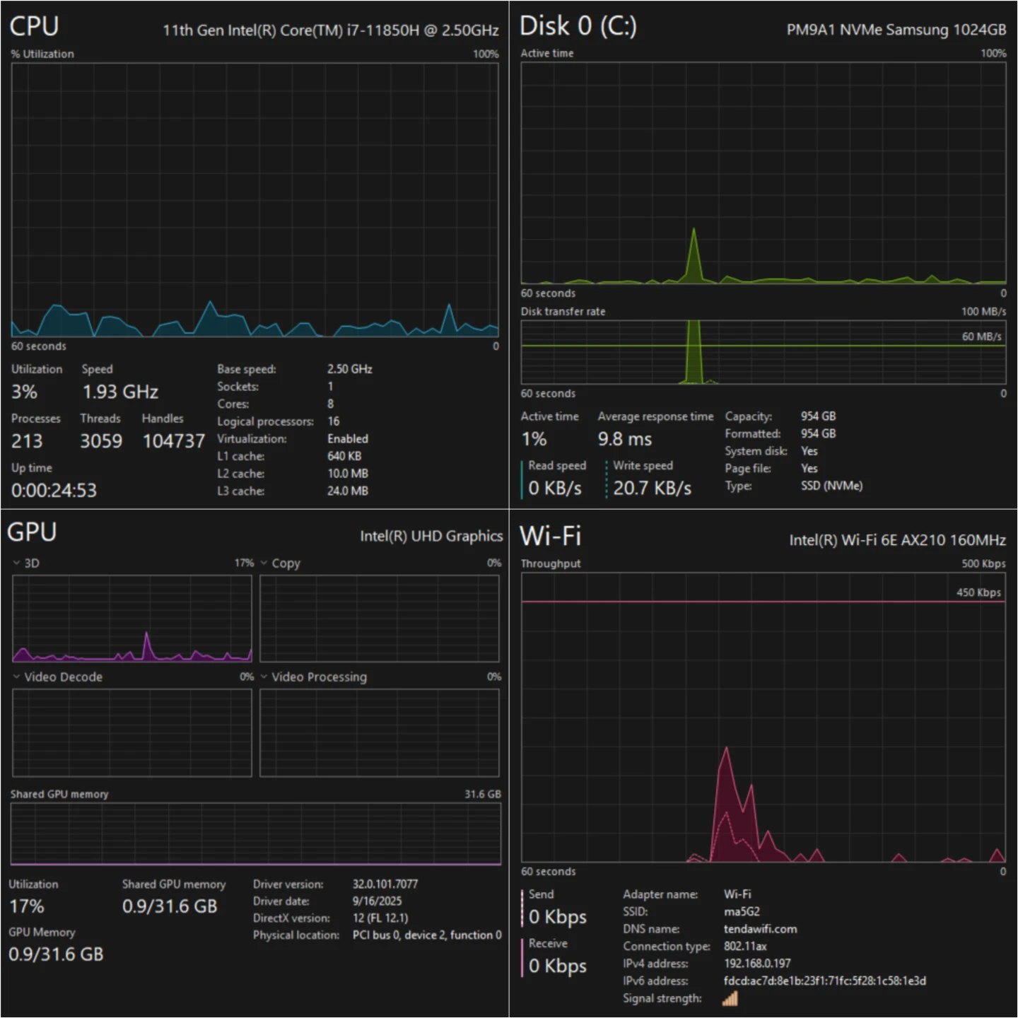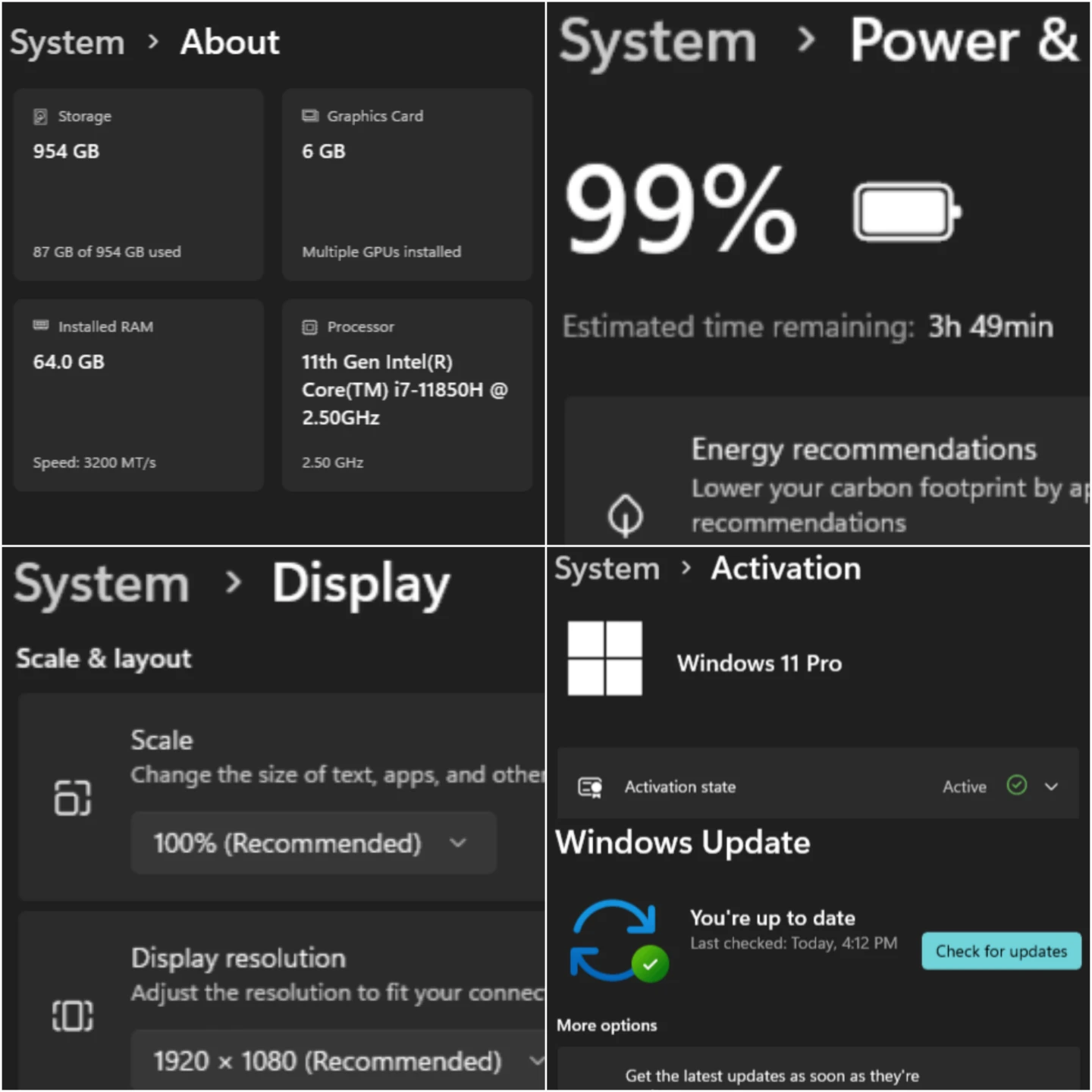 * Processor: 11th Gen Intel Core i7-11850H