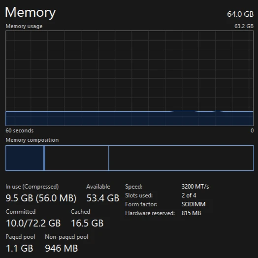 * Memory: 64GB RAM