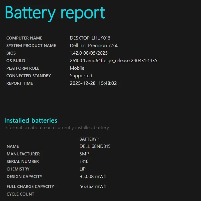 For sale is a Dell Precision 7760 mobile workstation laptop, offering high performance with its 11th Gen Intel Core i7-11850H processor, 64GB of RAM, and a fast 1TB NVMe SSD. The graphics are powered by an NVIDIA RTX A3000 Laptop GPU with 6GB of dedicated memory, making it suitable for demanding tasks. It comes with Windows 11 Pro installed and activated, and its battery is in excellent condition.