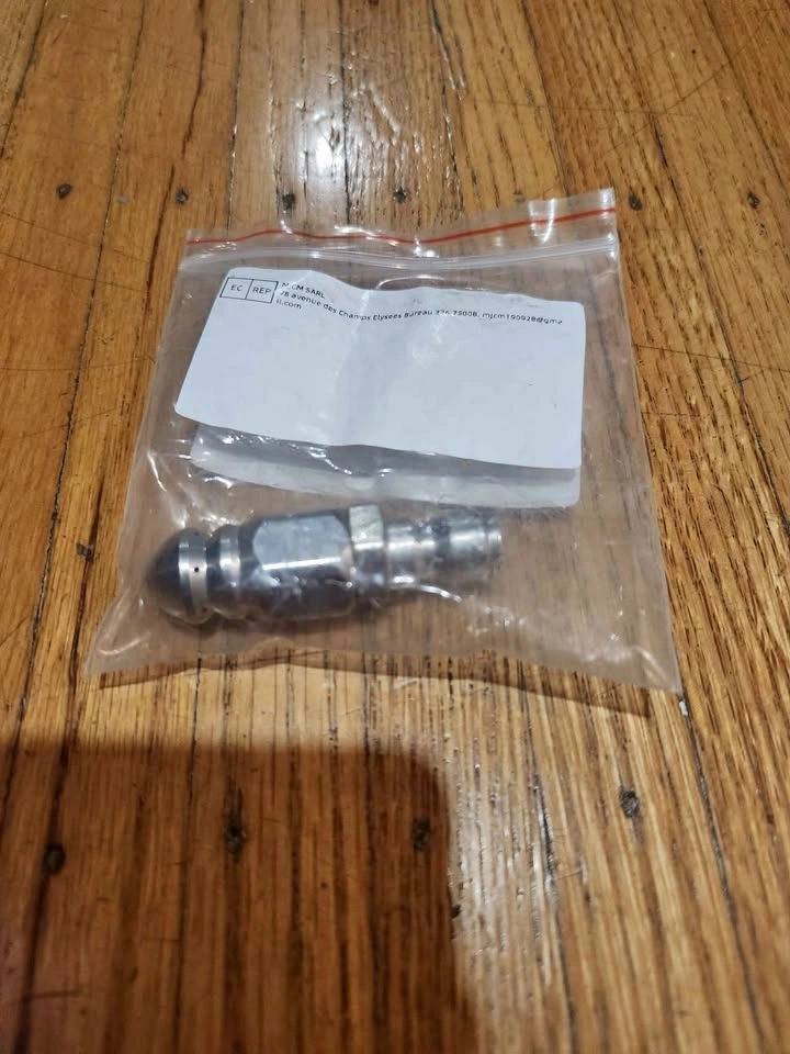 Multiple direction nozzle. Good for sewers and drains, inside of pipes if you have the right hose to use it with. Uses 1/4 quick connect.