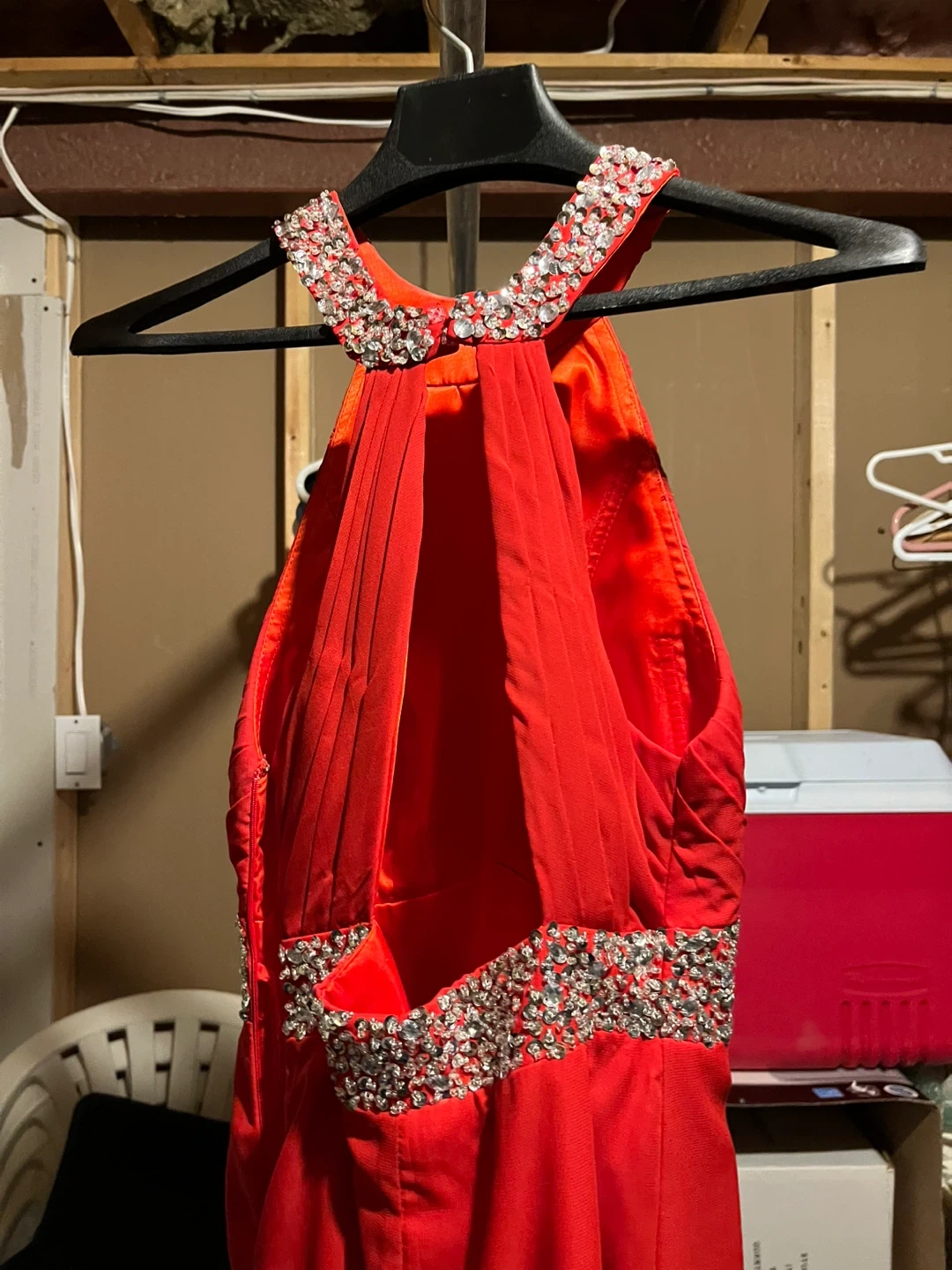 Red Halter Neck Formal Dress with Rhinestone Embellishments