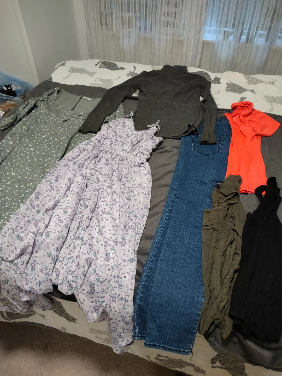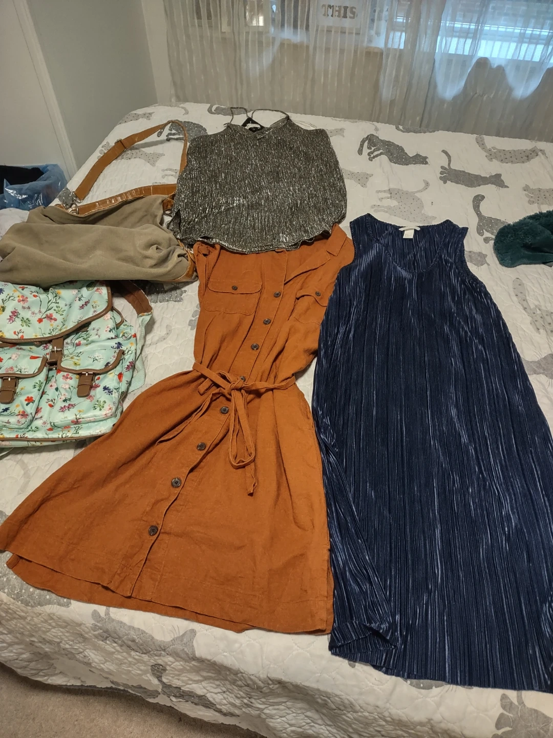 $25 for the entire bag. Many items are new with tags. Mostly size small with some medium stuff. Photos include a sampling of the items but there is lots more that I didn't take photos of. First come first served.