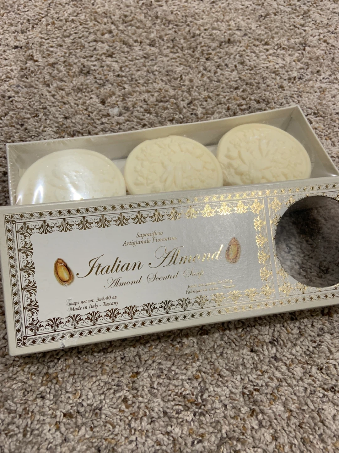Buy & Sell🧡 Italian Almond Scented Soap Set (3 bars)🧡 Italian Almond Scented Soap Set (3 bars)$4Set of three Italian Almond Scented Soaps. Each bar is approximately 4.40 oz. Made in Italy.ConditionNewBrandSaponificio A.F.WHERE TO MEETBirdlandView MapSELLERverifiedCorinneGuildford1628 reviews0 chats·0 favorites·4 viewsSEND CHAT TO SELLERHi Corinne! I’m interested in your listing.Hi Corinne! I’m interested in your listing.Get the Karrot app to chatSign In to chat