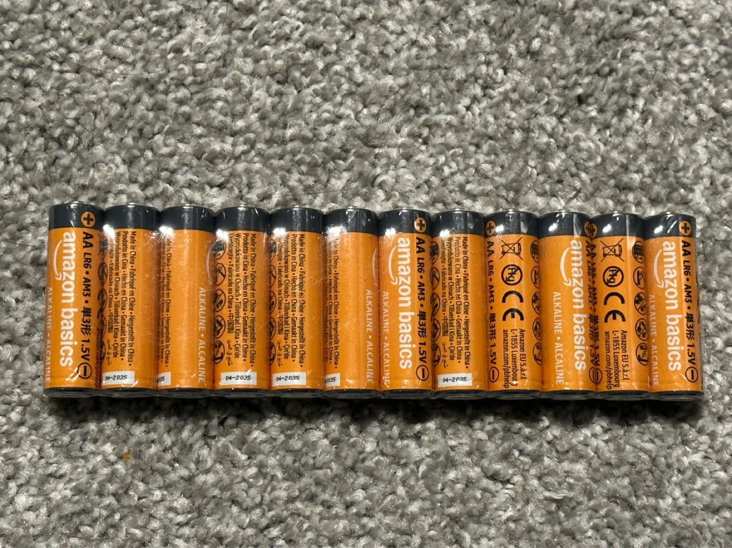 Get reliable power with this 12-pack of Amazon Basics AA alkaline batteries. They are designed for everyday use in your devices. Expiry date is 2035.