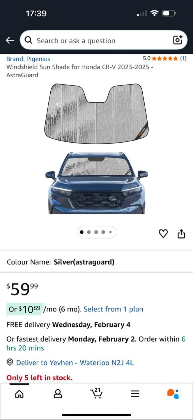 Pigenius Windshield Sun Shade – Honda CR-V 2023–2025