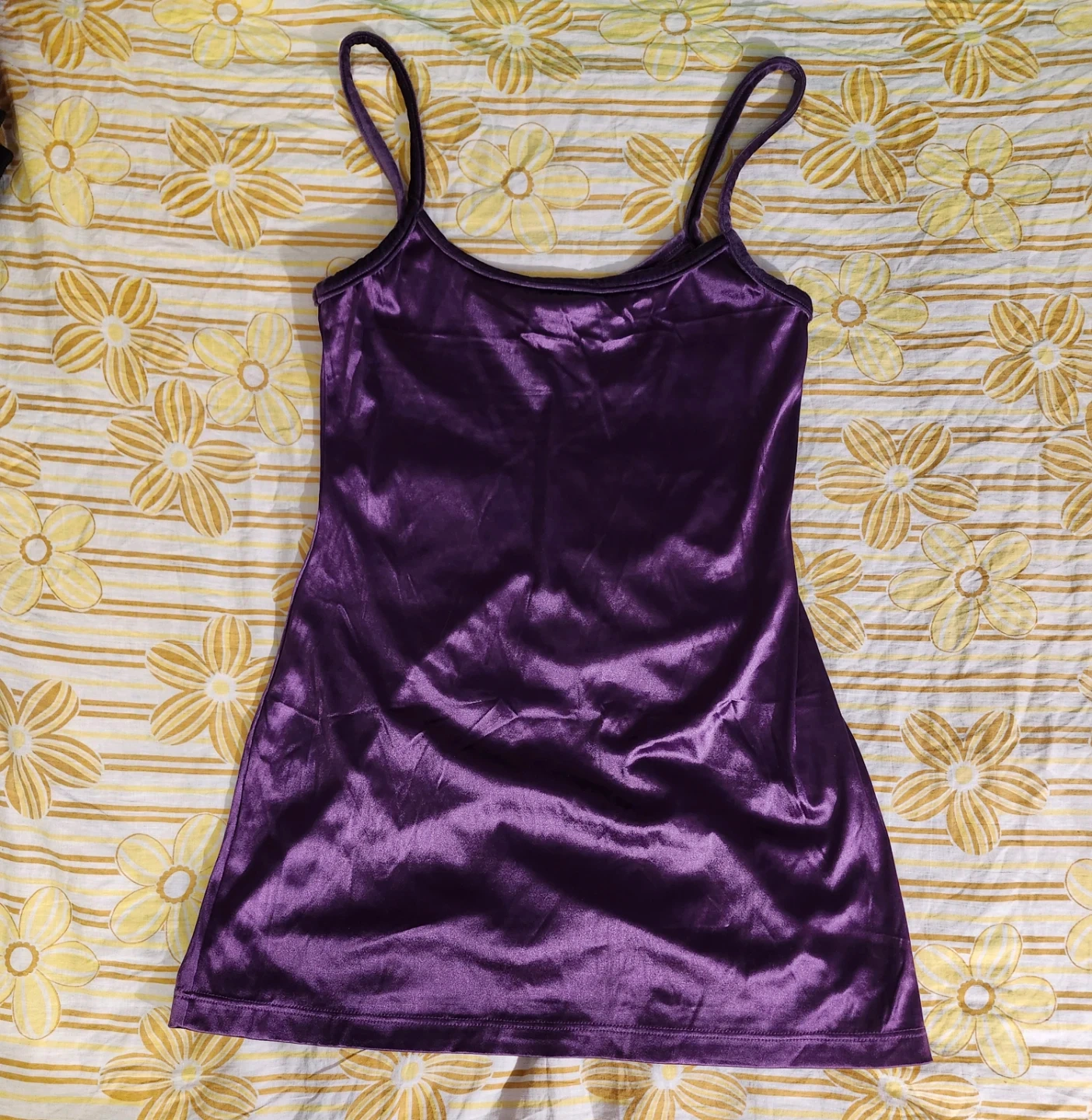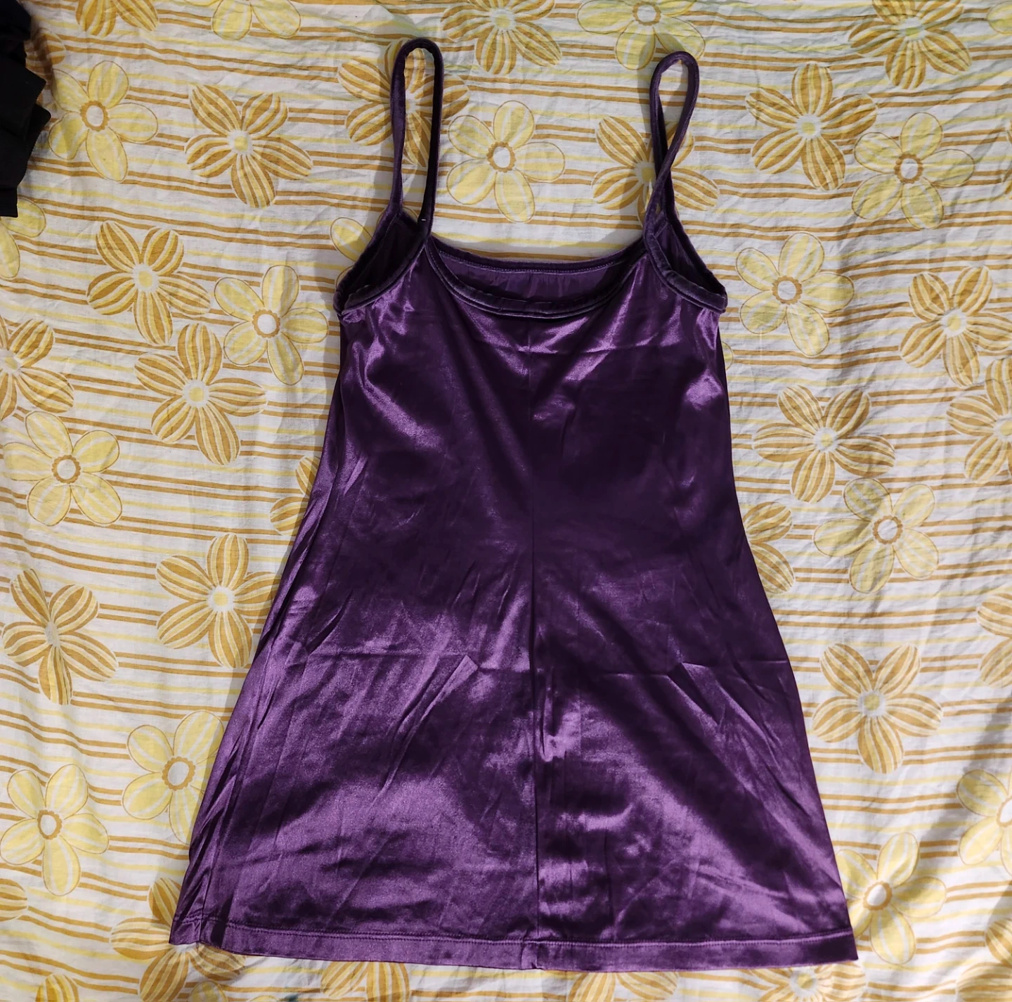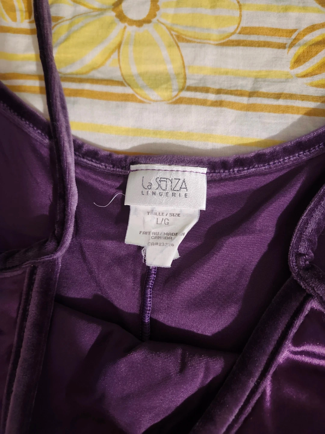 gorgeous 90s/2000s vintage purple satin slip dress/night gown. has velvet trimming and straps and is so cute for casual or date night wear. by La Senza.
