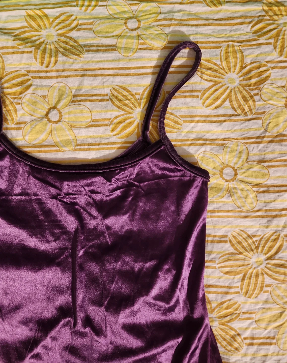 gorgeous 90s/2000s vintage purple satin slip dress/night gown. has velvet trimming and straps and is so cute for casual or date night wear. by La Senza.