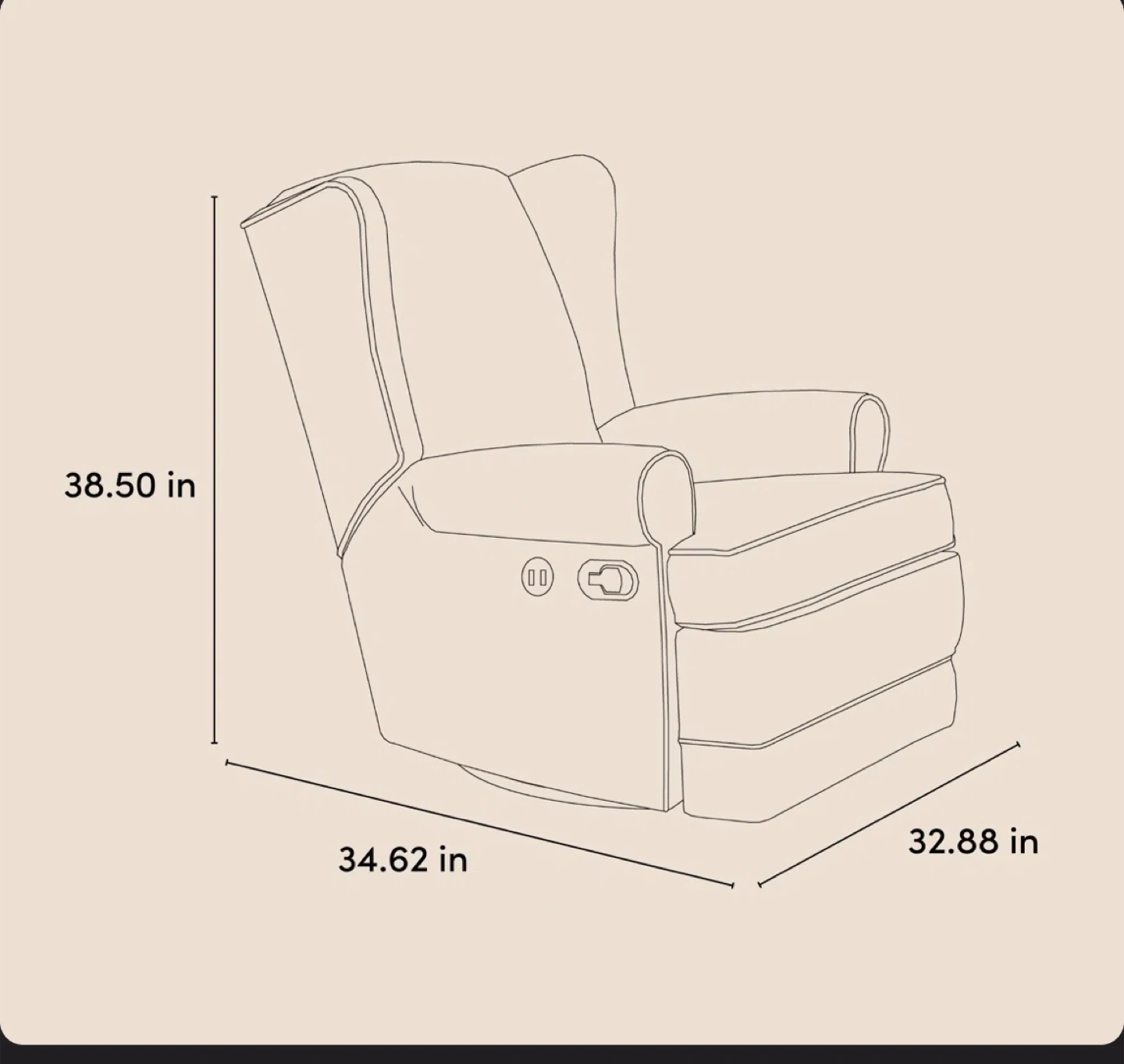 This Storkcraft Rocker glider features a swivel,and reclining function, perfect for relaxing. It's a comfortable addition to any nursery or living space. Dimensions are 38.50 in height, 34.62 in width, and 32.88 in depth.