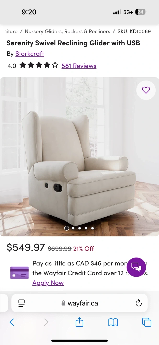 Storkcraft Serenity Swivel Reclining Glider Rocker with USB
