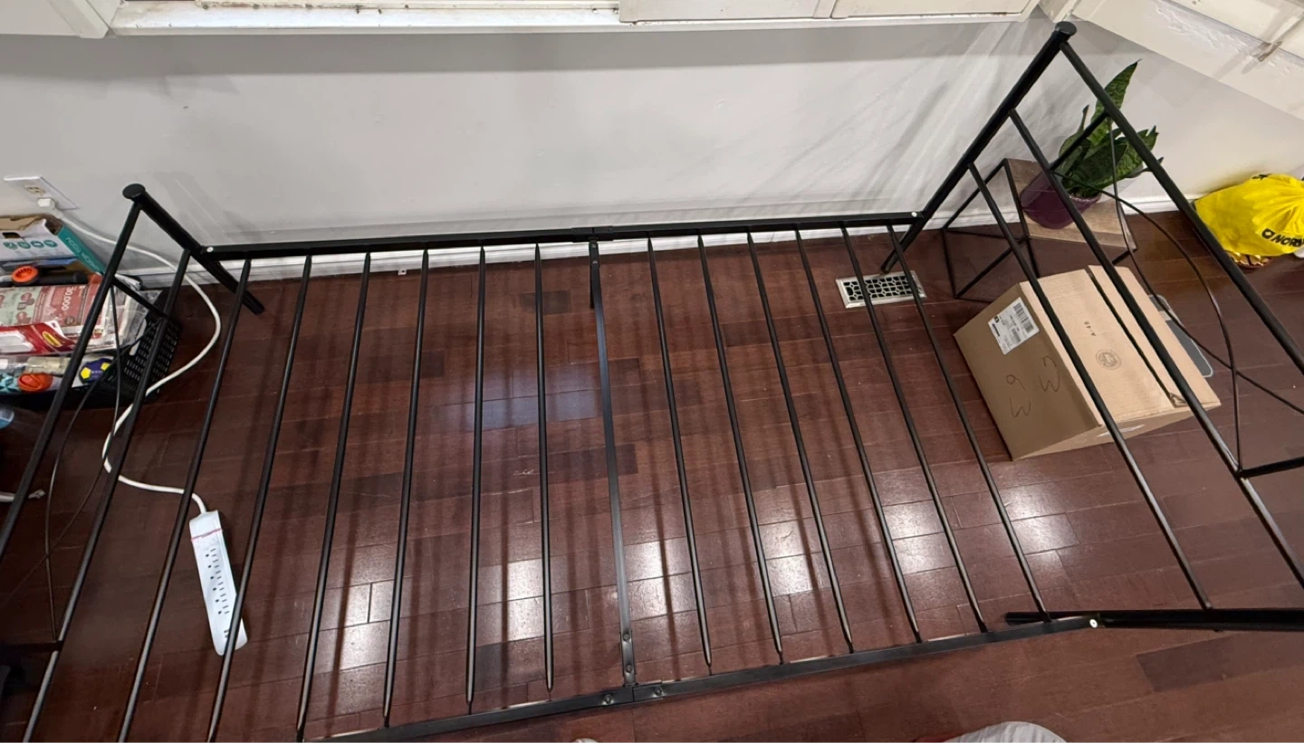 Sturdy black metal bed frame with both headboard and footboard support included.