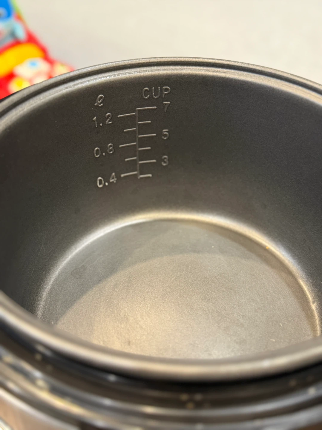 Hamilton Beach rice cooker with multiple settings. It has a non-stick inner pot. Measurements are clearly marked for cups and litres. Great for cooking rice and other grains!