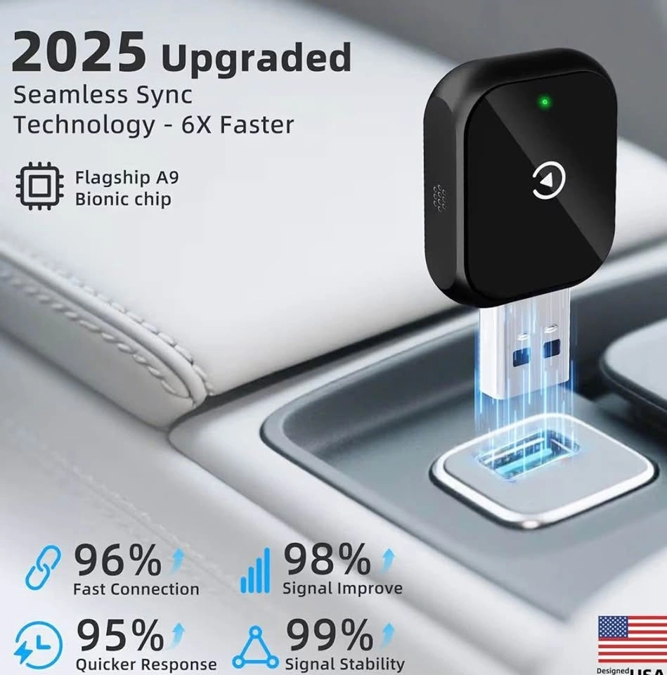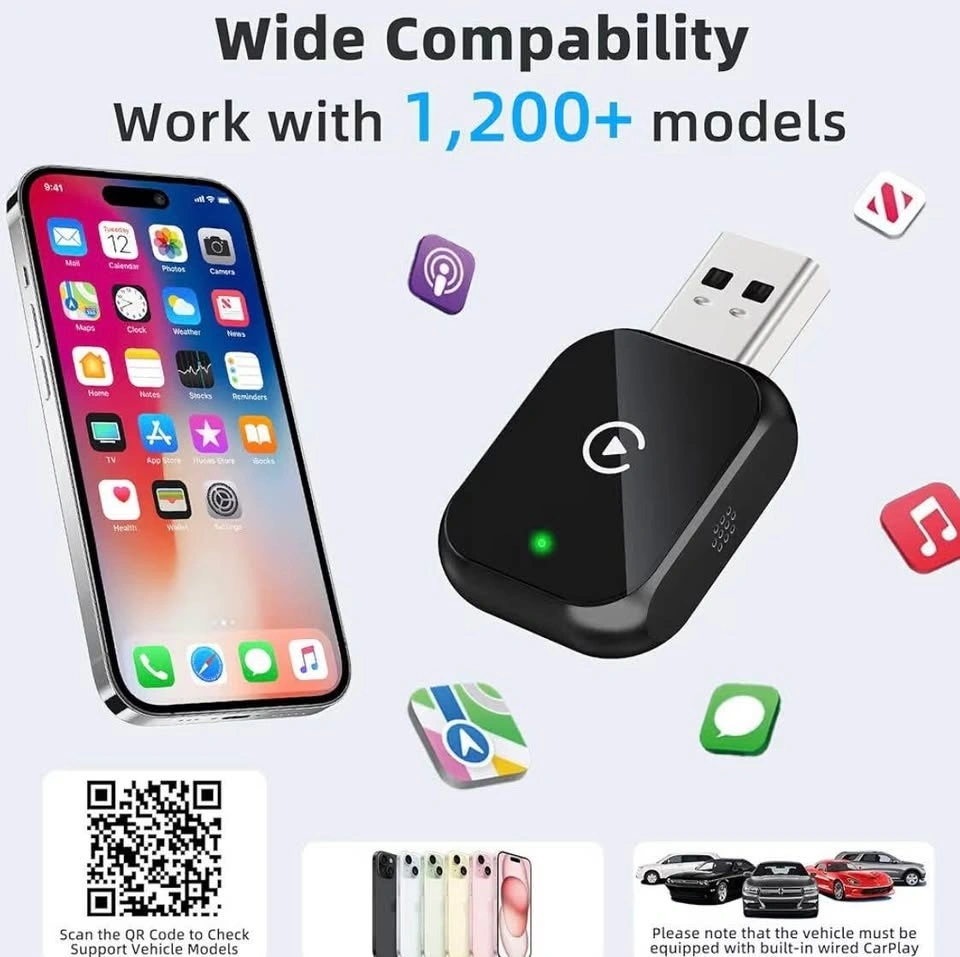 Junboer Wireless Carplay Adapter works with 1200+ models (2016+). Keep factory controls for music, nav, and Siri—no car upgrades needed!