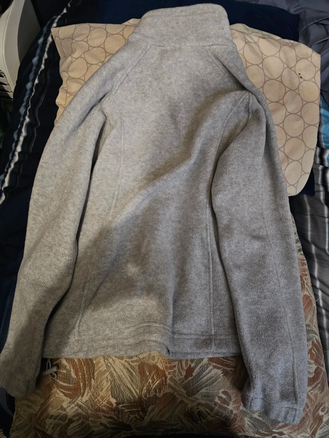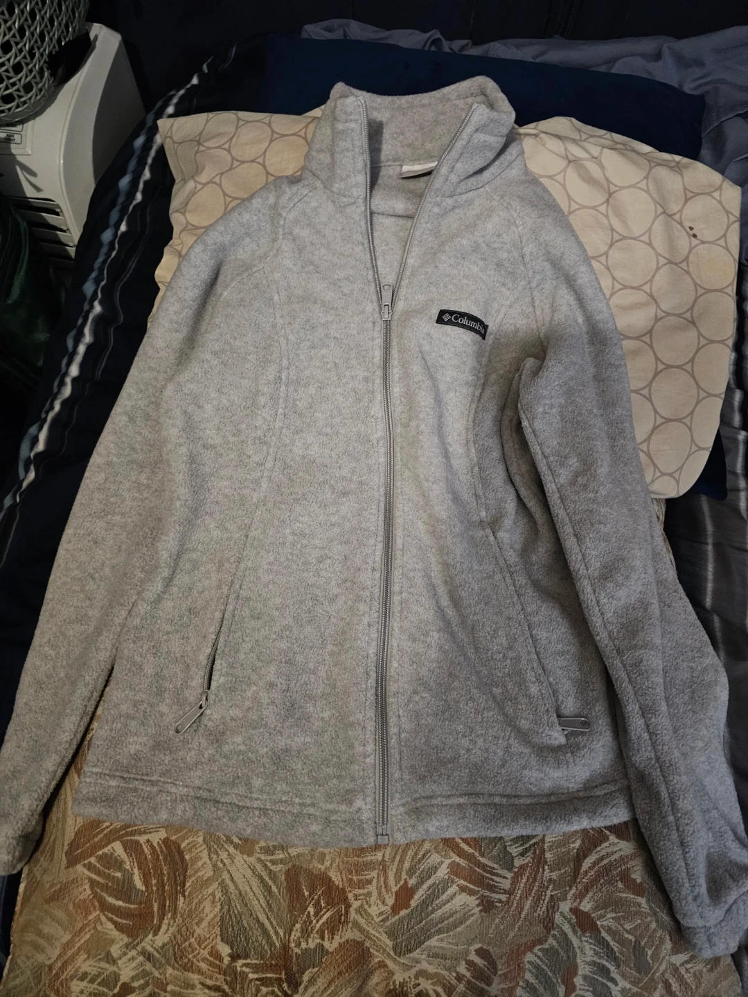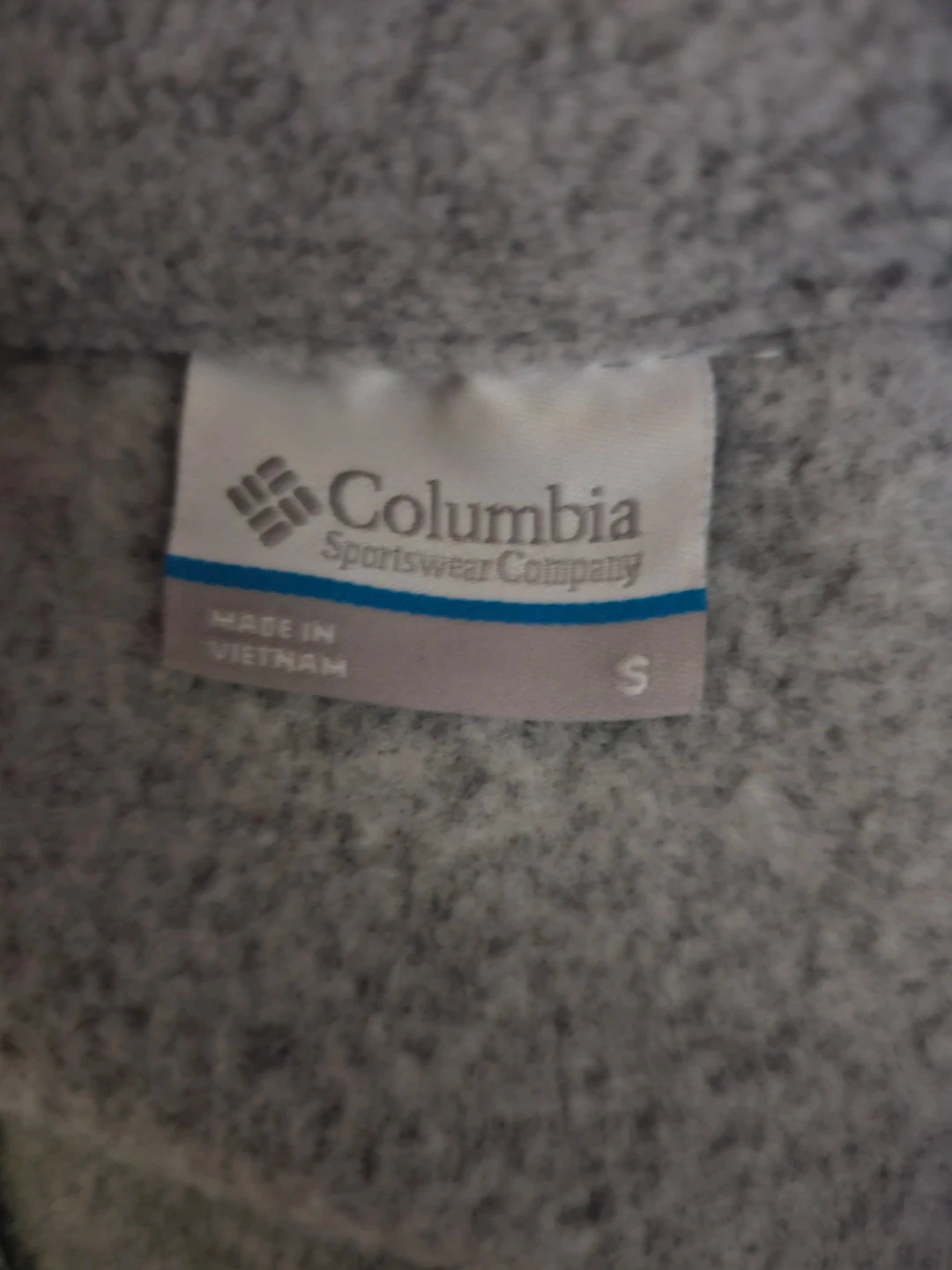 This is a Columbia Sportswear fleece jacket in grey. It's a size small and made in Vietnam. This jacket is perfect for staying warm on cooler days!