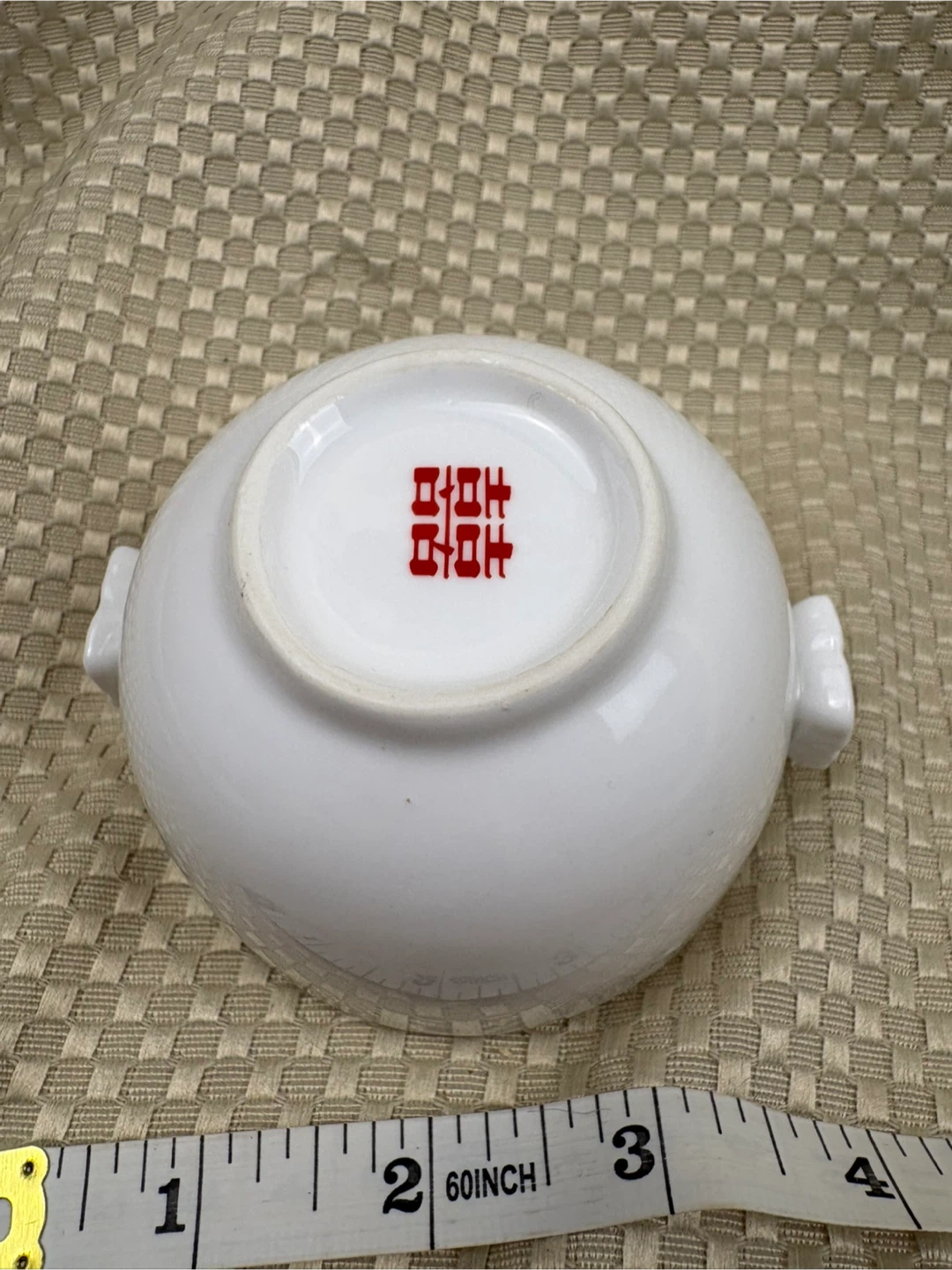 White Ceramic tea Strainer Bowl with Double Happiness Symbol 🧡