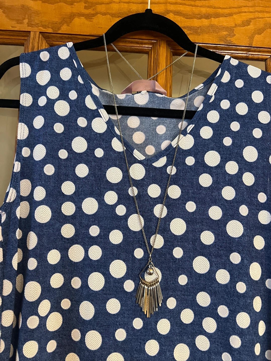 SJS Blue Polka Dot Sleeveless Dress with Necklace