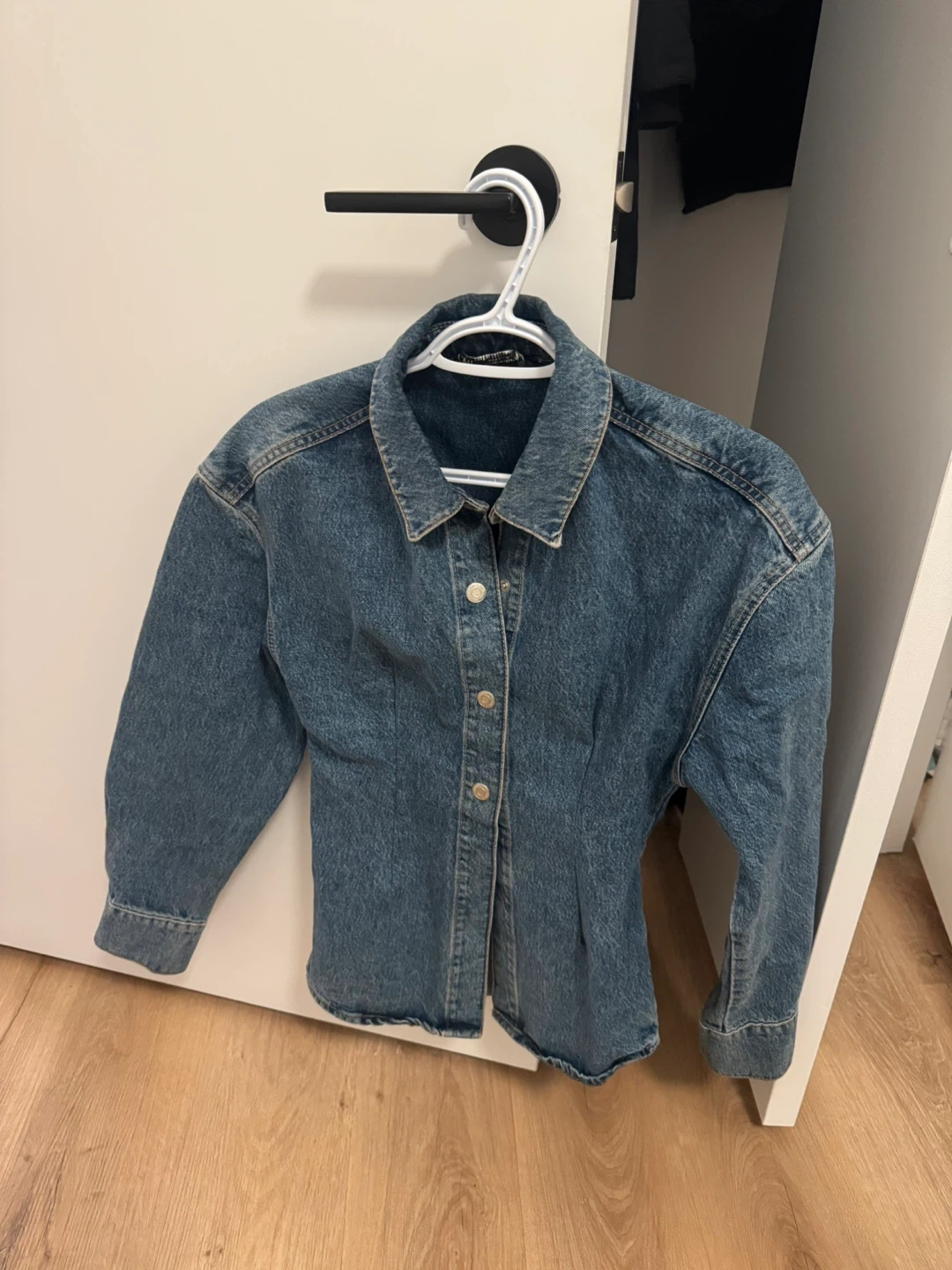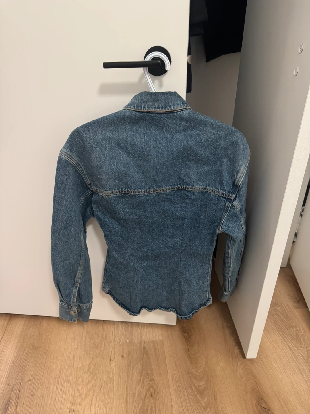 Zara long-sleeved denim shirt in a classic blue wash. Made in Turkey. Buttons up the front. Synched waist!