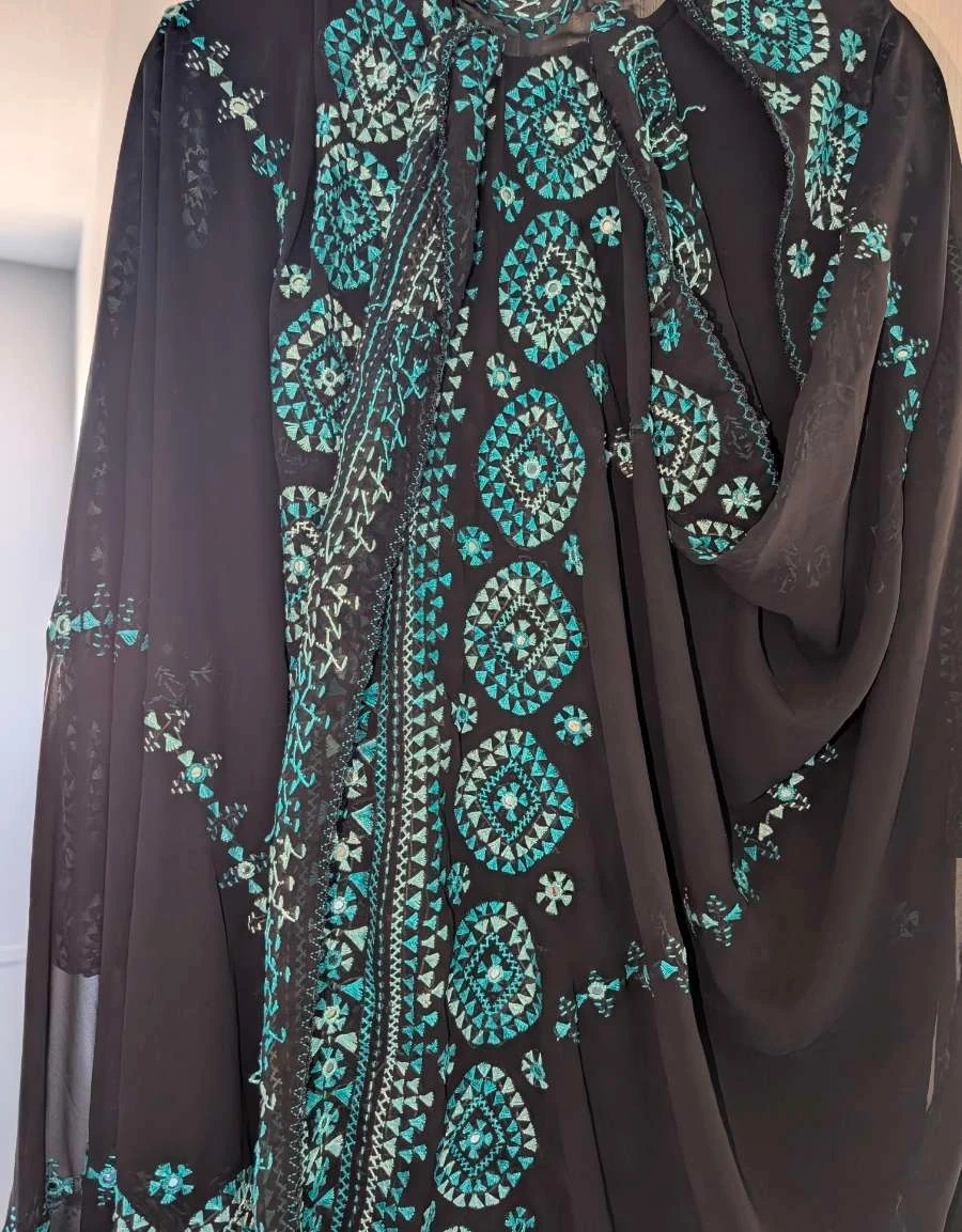 Embroidered Black and Teal Dress with beautiful dupatta