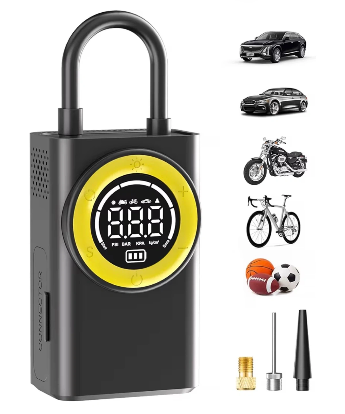 Tire Inflator Portable Air Compressor,150 PSI Cordless Air Pump for Car Tires with Digital Pressure Gauge & LED Light,5X Faster Portable Tire Inflator for Car,Motorcycle,Bike,Ball