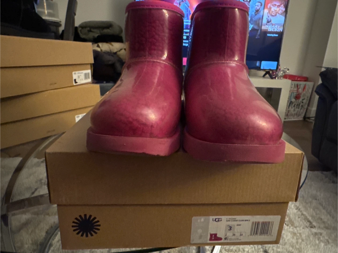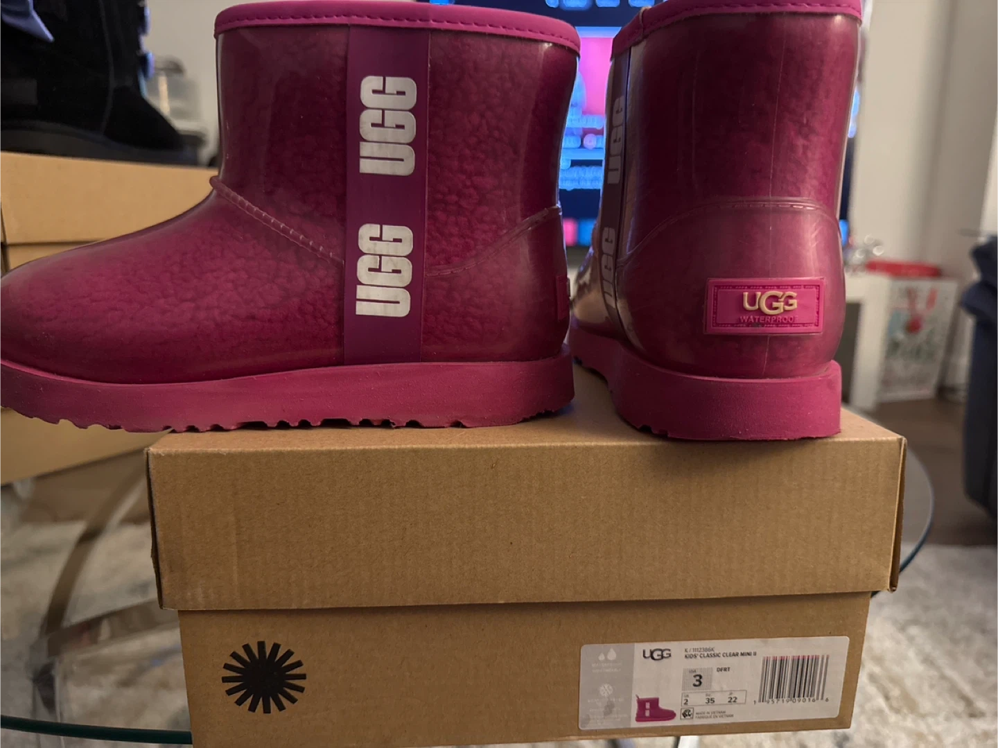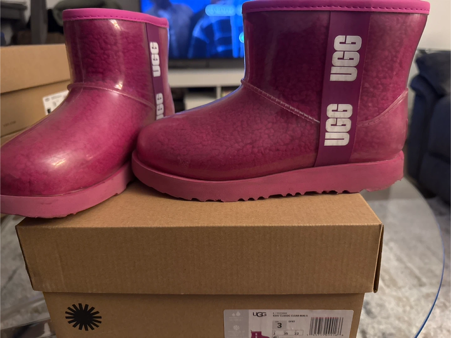 Buy & SellUGG Kids Pink Clear Mini Boots Size 3UGG Kids Pink Clear Mini Boots Size 3$55These are pink UGG Kids Clear Mini boots. They're waterproof and feature a clear outer shell. Size is 3.ConditionLike newAge9 years and olderWHERE TO MEETWhite Plains LibraryView MapSELLERverifiedTammieWhite Plains650 reviews0 chats·0 favorites·4 viewsSEND CHAT TO SELLERHi Tammie! I’m interested in your listing.Hi Tammie! I’m interested in your listing.Get the Karrot app to chatSign In to chat