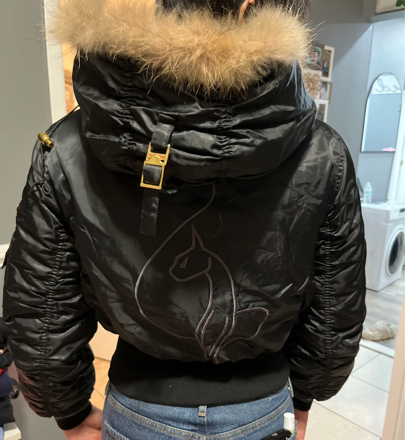 Black "BABY PHAT" Bomber Jacket with Fur Hood