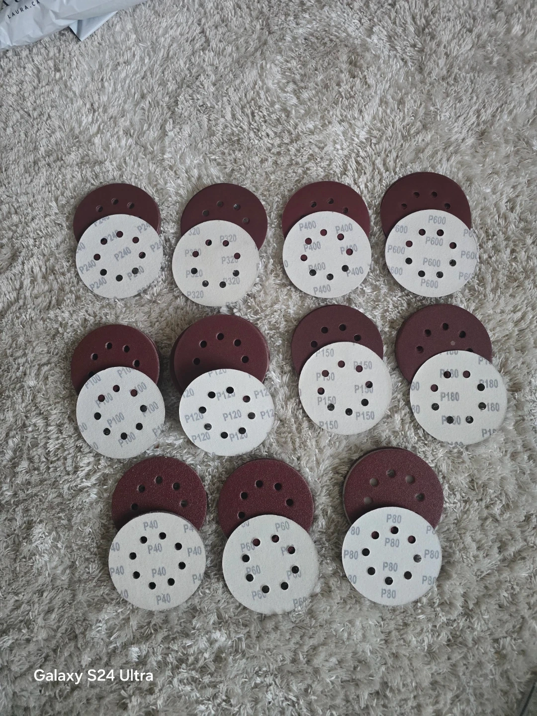 Includes 110 sanding discs. Size is 125mm with 8 holes. Grit ranges from 40 to 600. These discs are good for a variety of sanding tasks.