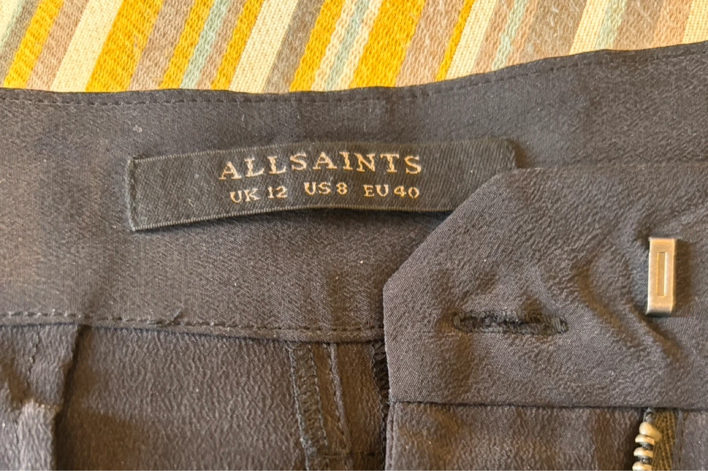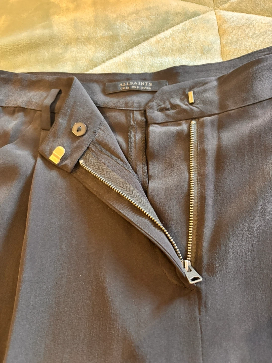 All Saints black 100% silk crop pants. In perfect condition. Metal zipper as shown in picture with 25 inch inseam.