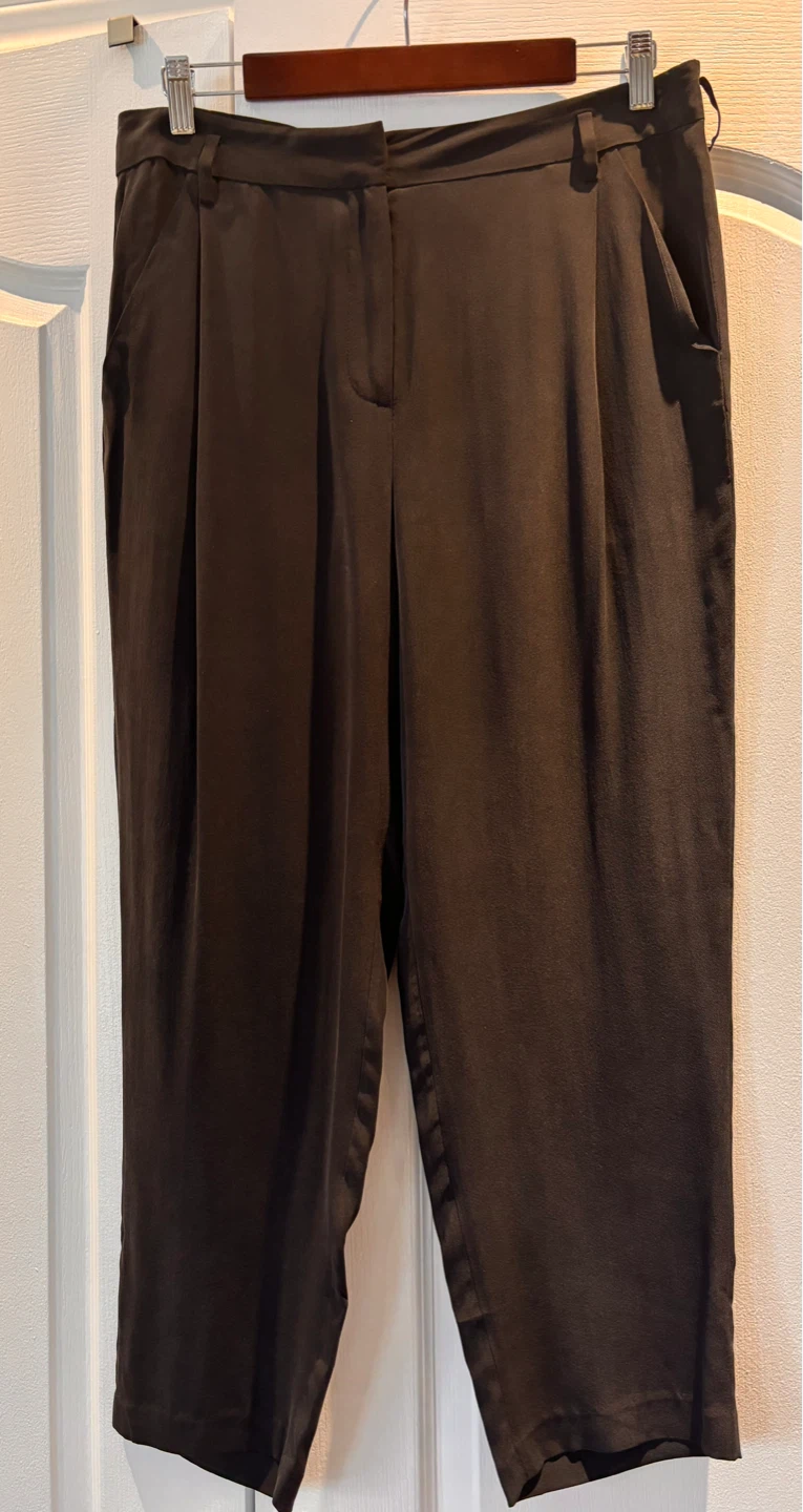 All Saints black 100% silk crop pants. In perfect condition. Metal zipper as shown in picture with 25 inch inseam.