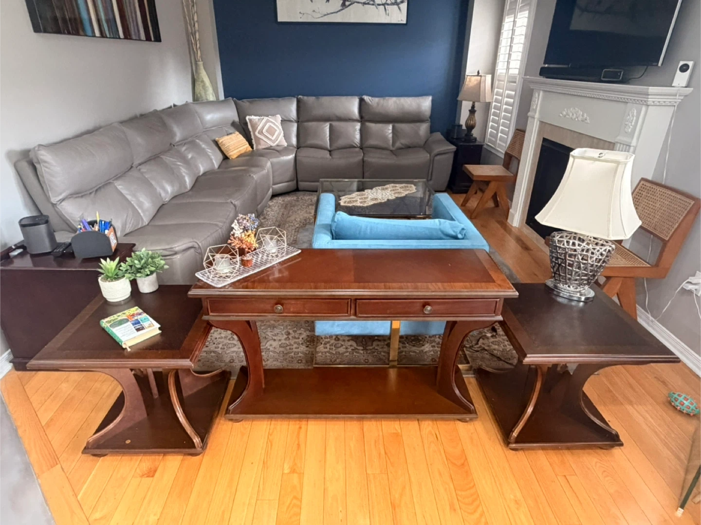 Wooden Console Table and End Tables Set