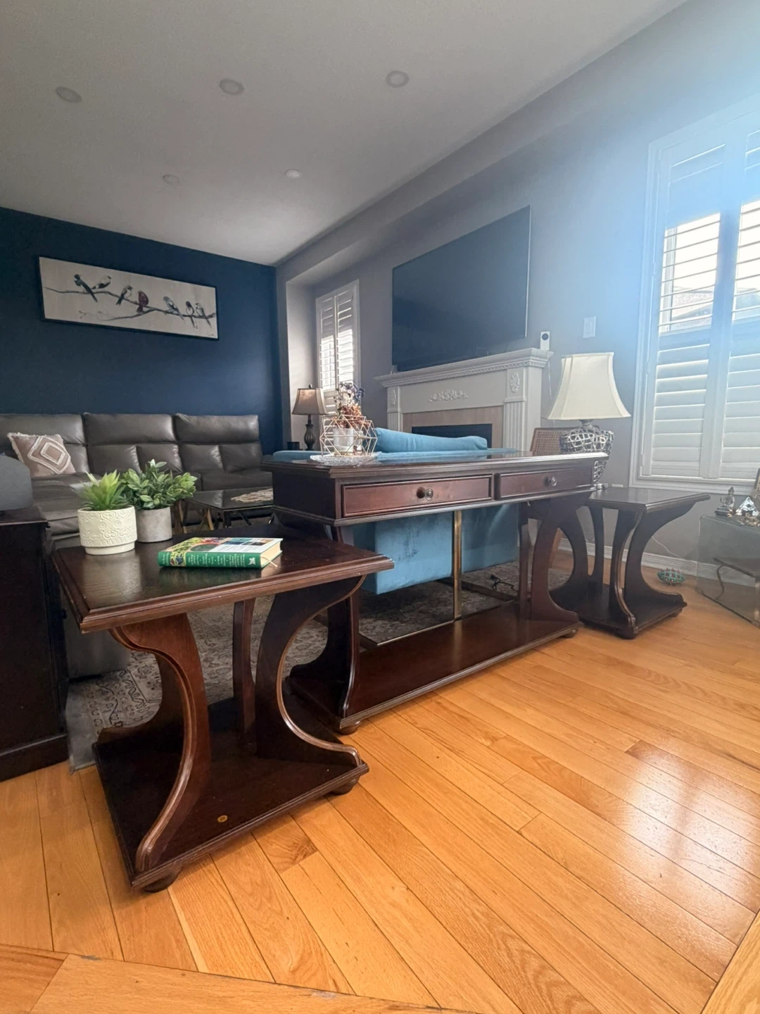 Wooden Console Table and End Tables Set
