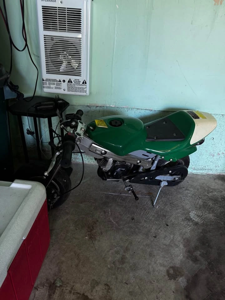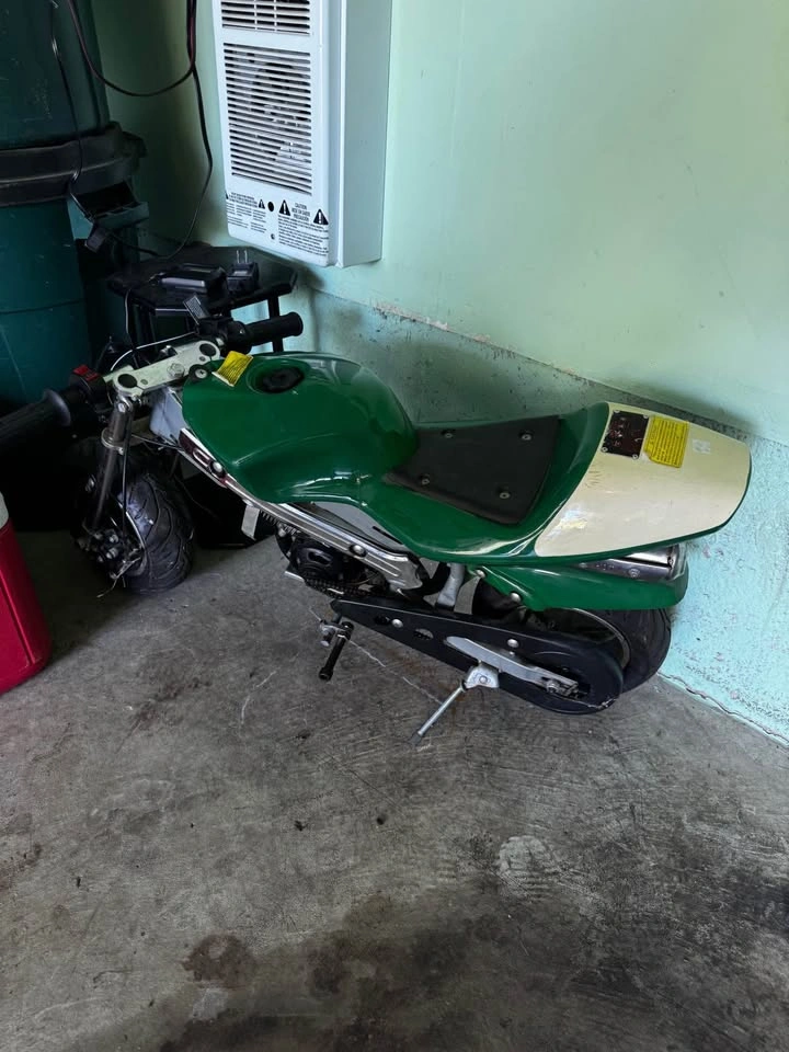 15The kids motorcycle has a cool appearance, with a bright black shell and a smooth frame, which is fashionable and charming. The pocket motorcycle is designed with a soft single seat cushion that is very comfortable to sit on, and the kickstand provides a reliable and stable ground stop. Our mini pocket bikes use pneumatic off-road tires, which are non-slip and wear-resistant. The children's mini motorcycle uses a gasoline-powered engine, with a 49cc two-stroke strong power, with a top speed of 20 miles per hour. The fast, cool and fun ride will bring excitement and pleasure to your child experience. Carburetor just needs cleaning, kept well maintained just haven’t had time to use it anymore. It’s so fun to ride around