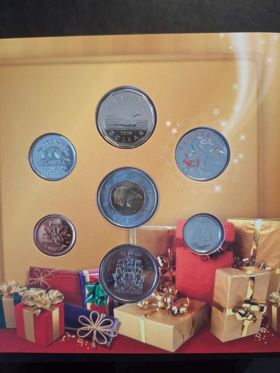 This is the 2006 Commemorative Holiday Coin Set from the Royal Canadian Mint. It includes a collection of Canadian circulating coins from that year. This set would be great for coin collectors or as a special holiday gift!