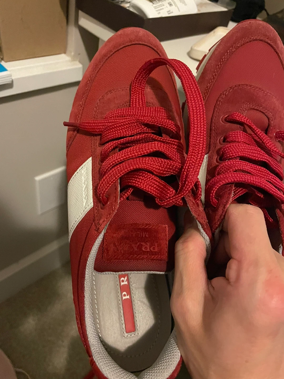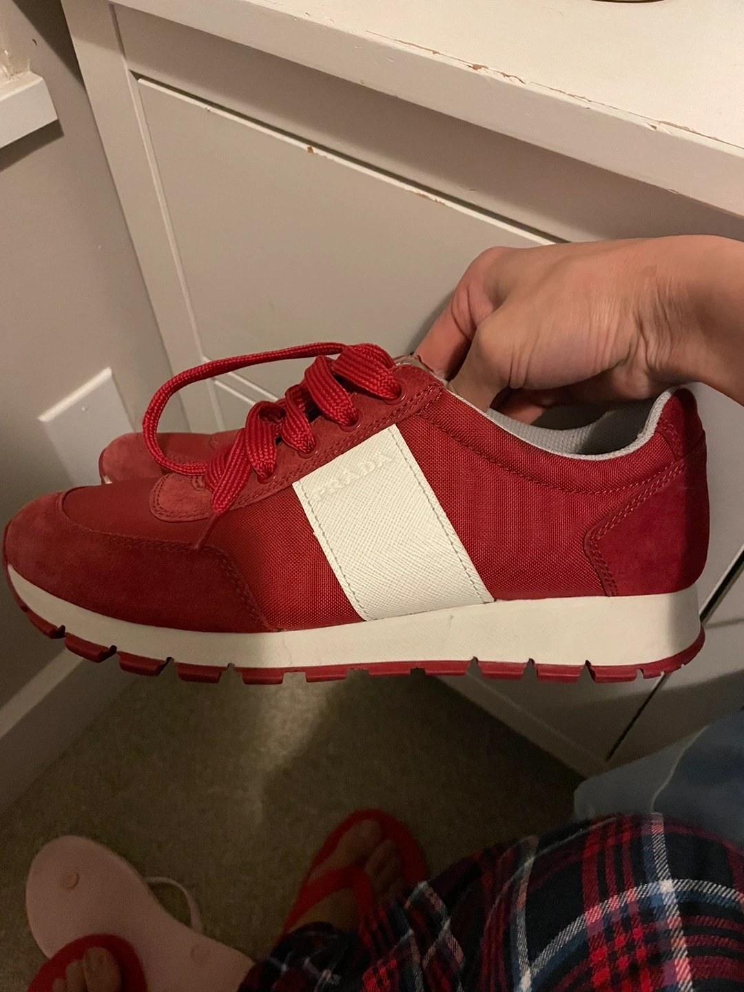 Buy & SellPrada Red Suede & Nylon Sneakers Size 37.5Prada Red Suede & Nylon Sneakers Size 37.5$145These are Prada red sneakers with white accents. Pick up in Richmond.ConditionLike newSize39.5BrandPradaWHERE TO MEET列治文中心购物广场View MapSELLERLeoCity Centre273 reviews0 chats·0 favorites·1 viewsSEND CHAT TO SELLERHi Leo! I’m interested in your listing.Hi Leo! I’m interested in your listing.Get the Karrot app to chatSign In to chat