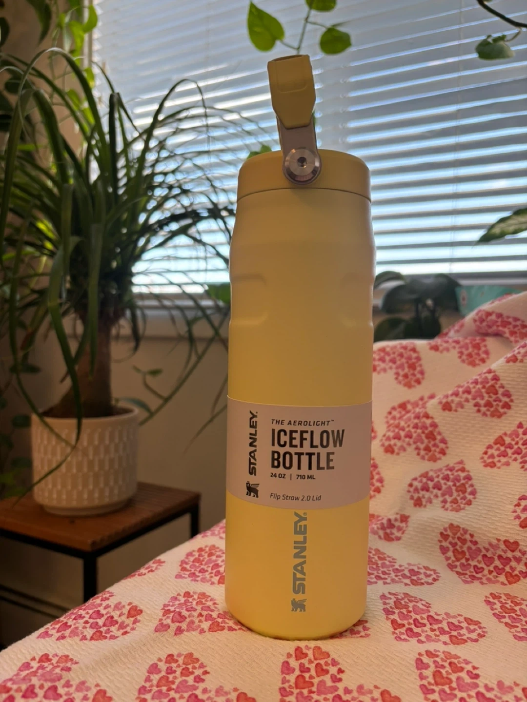 Aerolight IceFlow bottle. It holds 24 oz or 710 ml. It's a pale yellow colour and has a Flip Straw 2.0 Lid. It's great for keeping drinks cold!