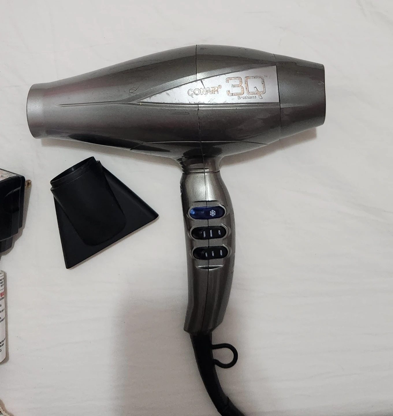 Selling a Conair INFINITIPRO Advanced Brushless Motor Styling Tool/Hair Dryer in silver! It comes with the attachments as seen in the photos. This styling tool is great for creating a variety of hairstyles and drying your hair quickly