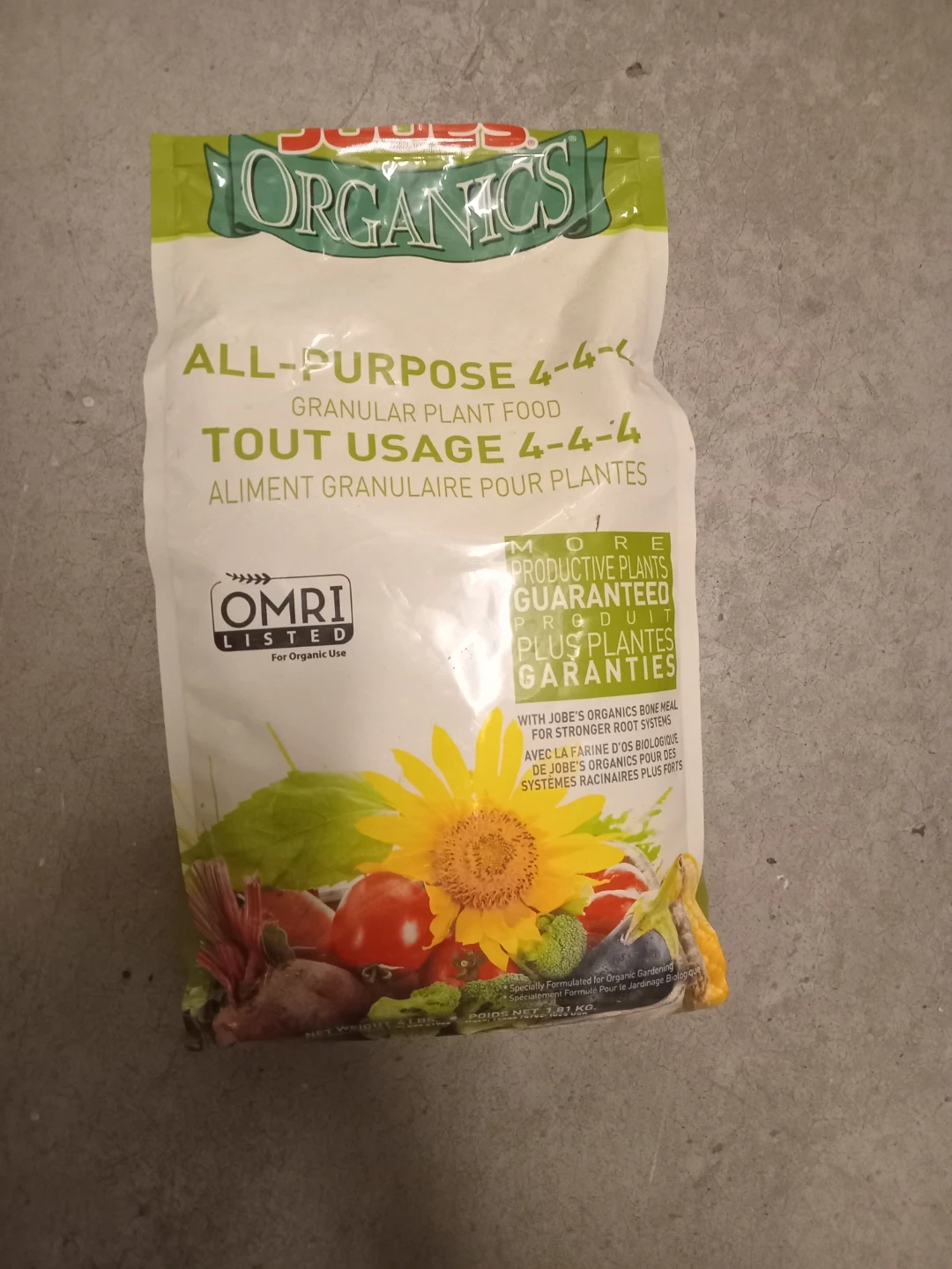 Jobe's Organics All-Purpose granular plant food. It's OMRI listed for organic use. This formula includes bone meal for stronger root systems.