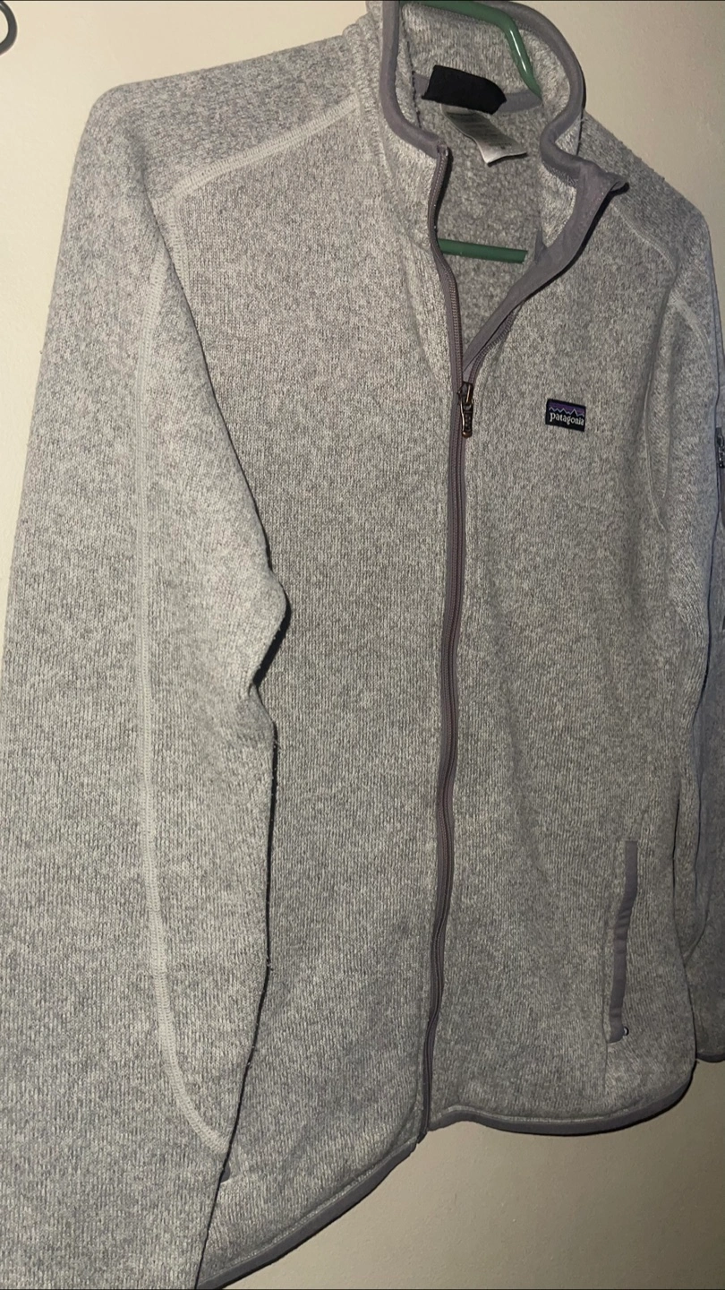 Grey women's size medium Patagonia fleece jacket. Full zip closure. Two zippered pockets. Excellent condition.