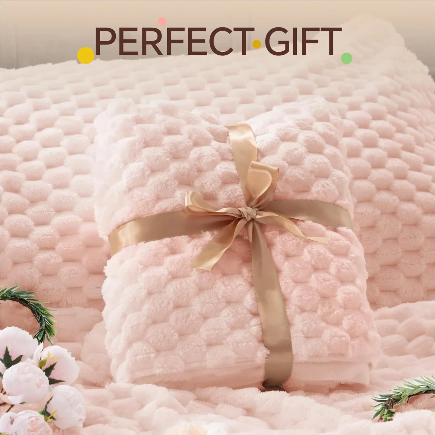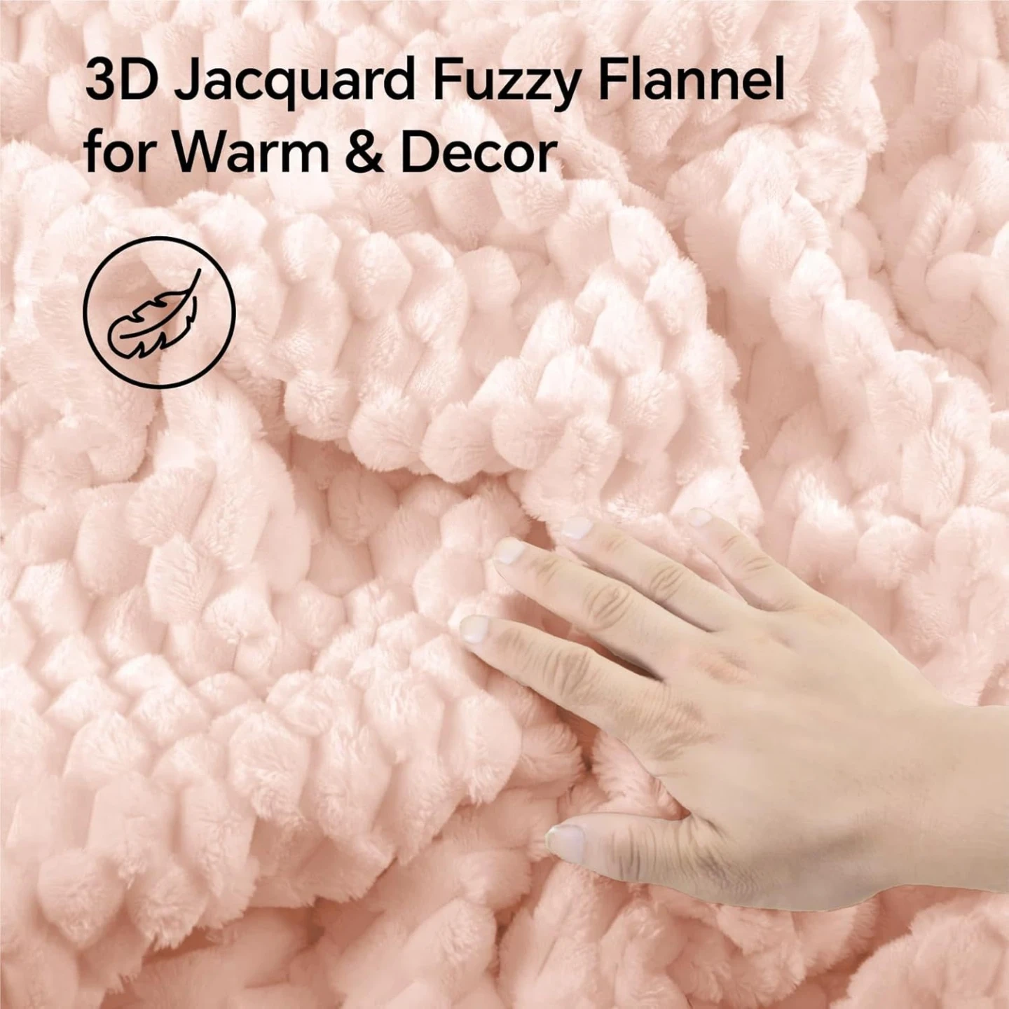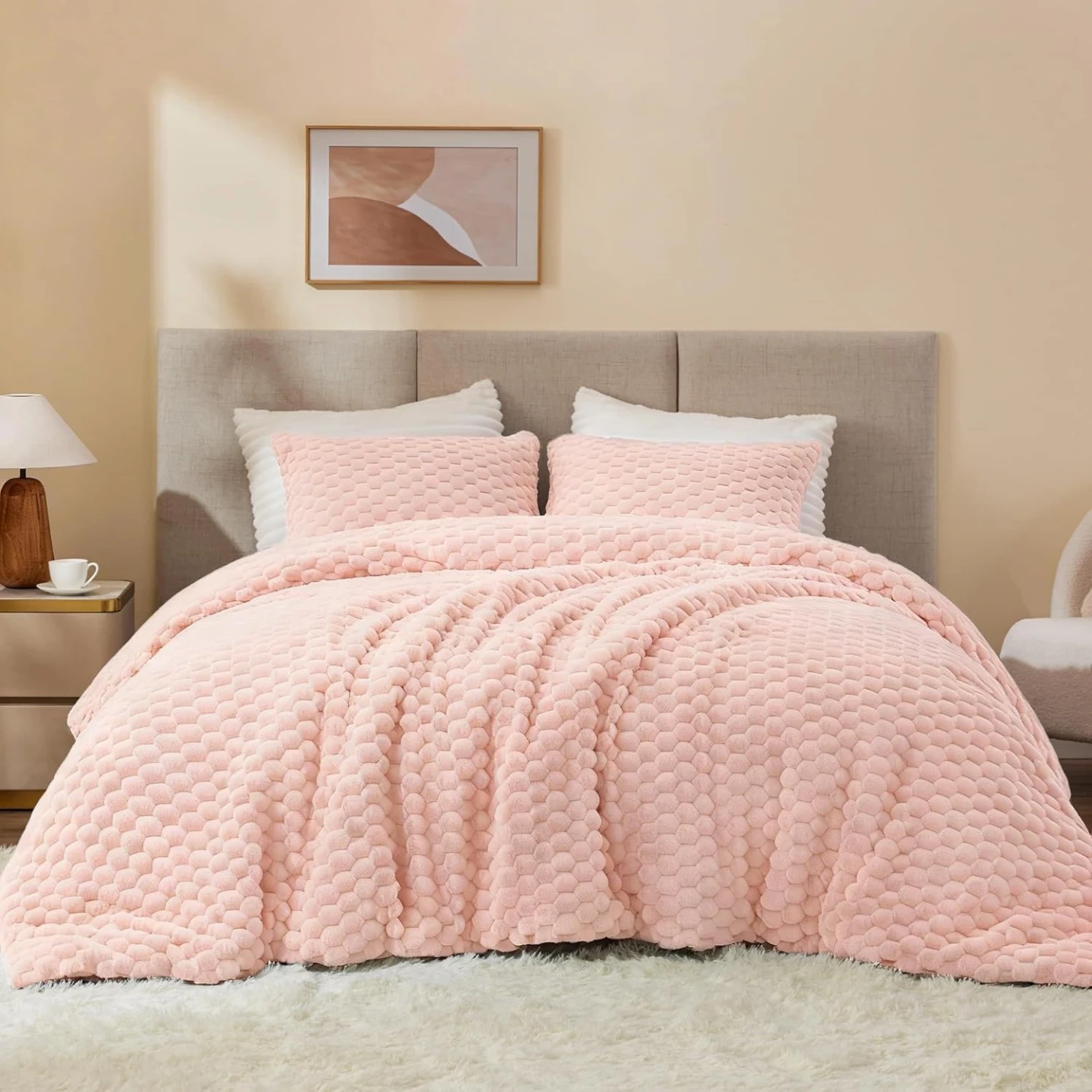 Pink 3D Jacquard Fuzzy Flannel Comforter Set