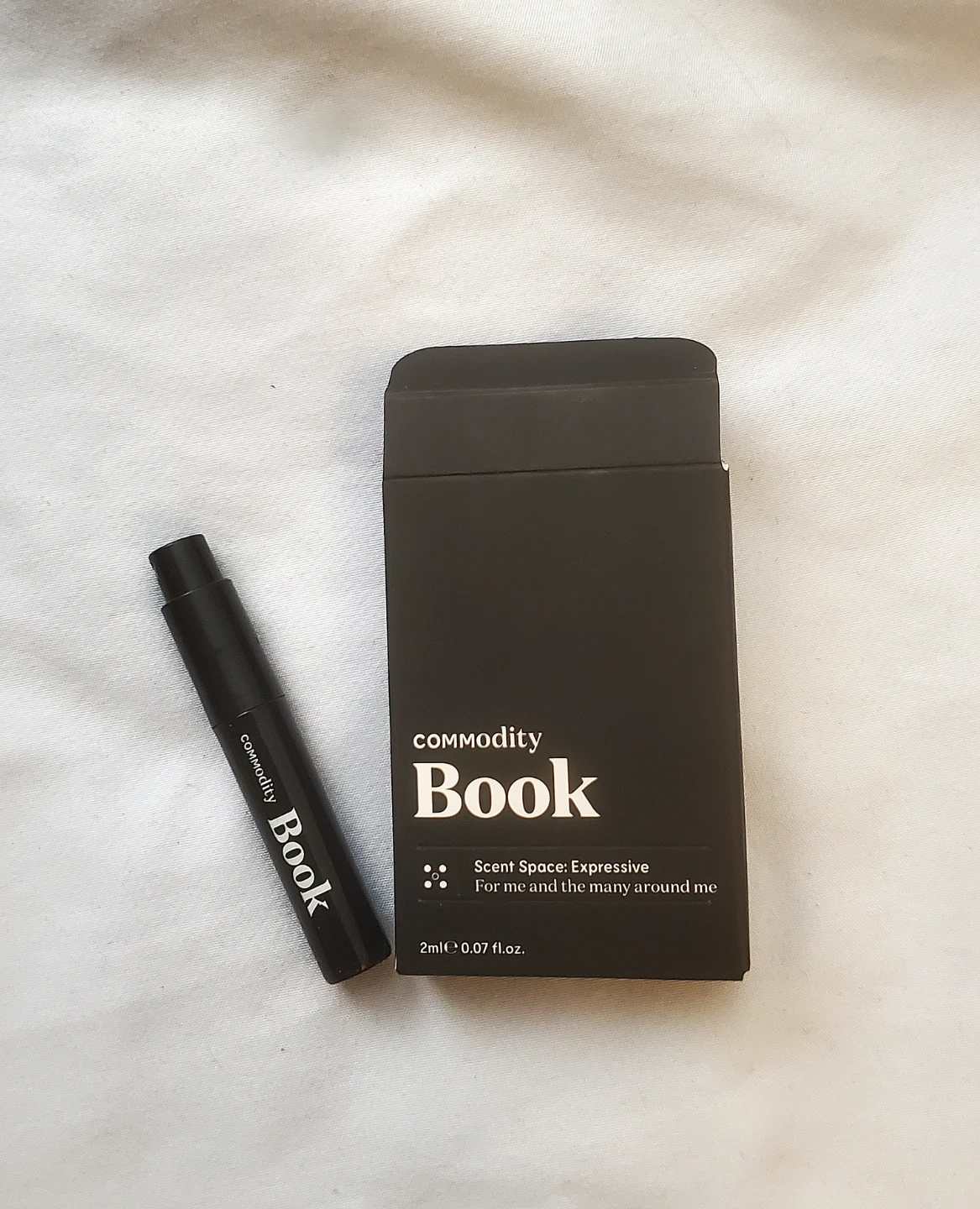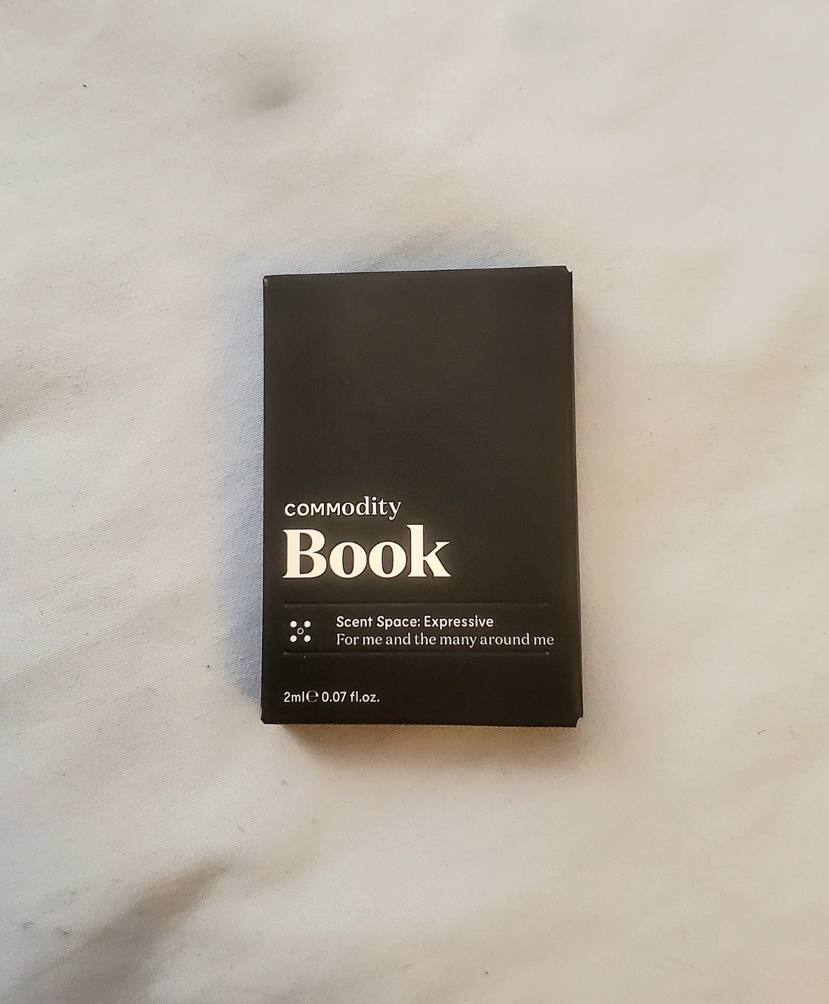 2ml sampler of Commodity Book, Scent Space: Expressive. Only sprayed 2 times for testing. Not my taste personally, but it smells calming and woody. It comes in the original sample box too.
