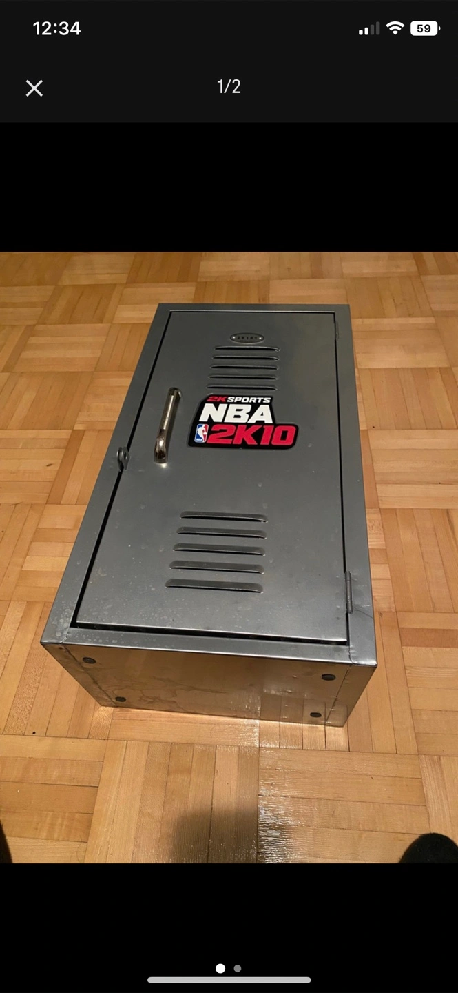 Selling an NBA 2K10 sports locker. It's in good condition and would be perfect for storing your dvds and gamesor other items. It has a handle and ventilation holes.