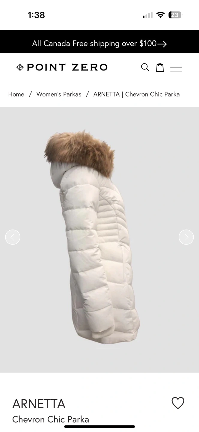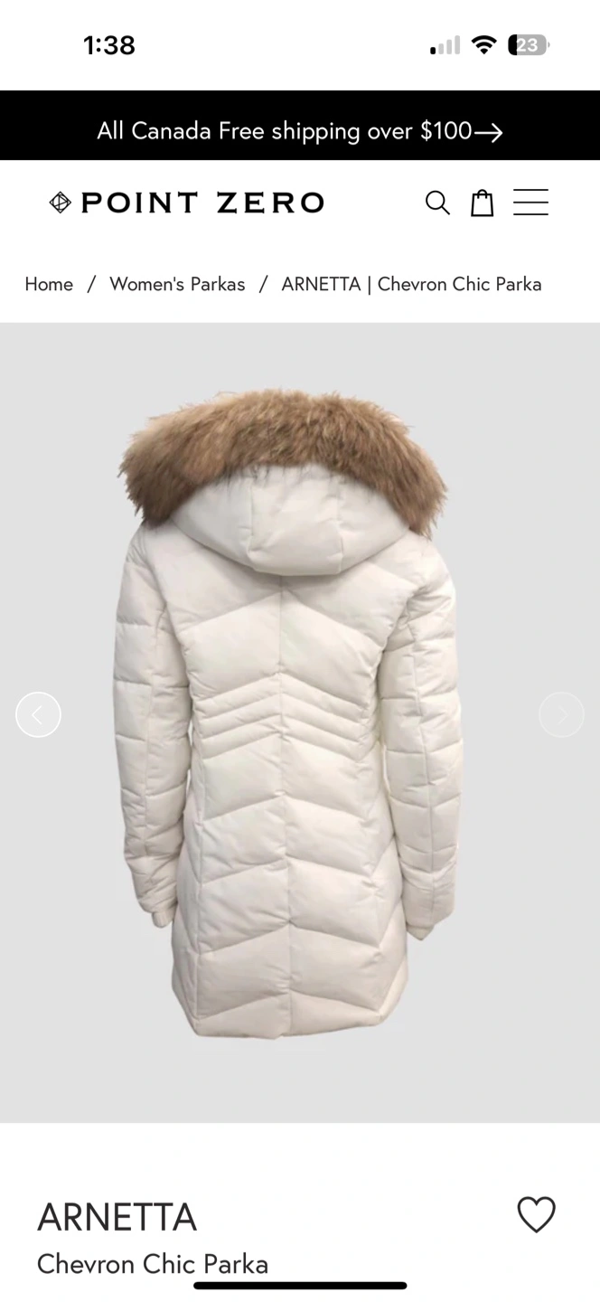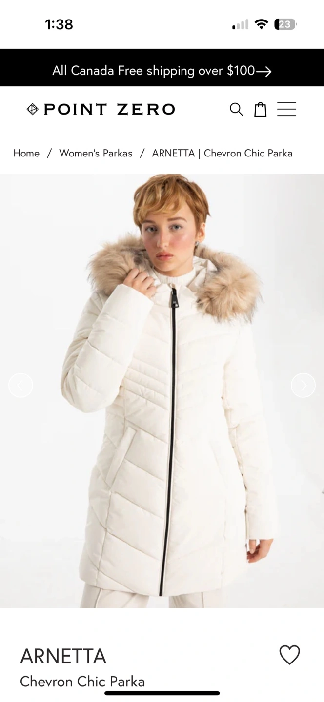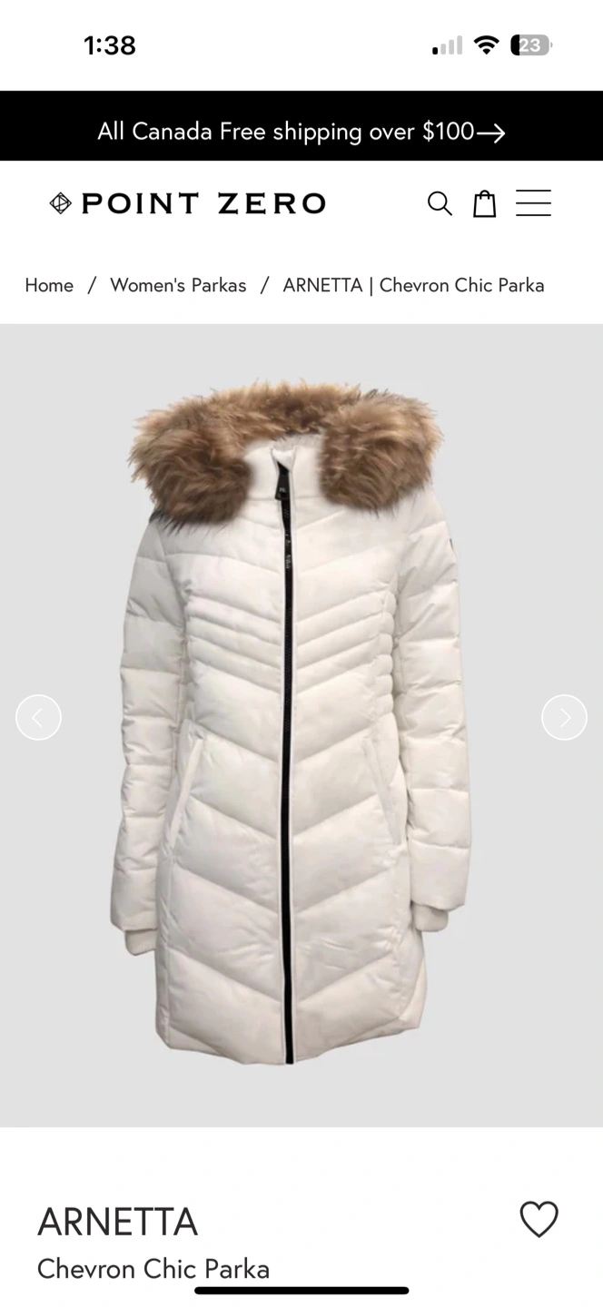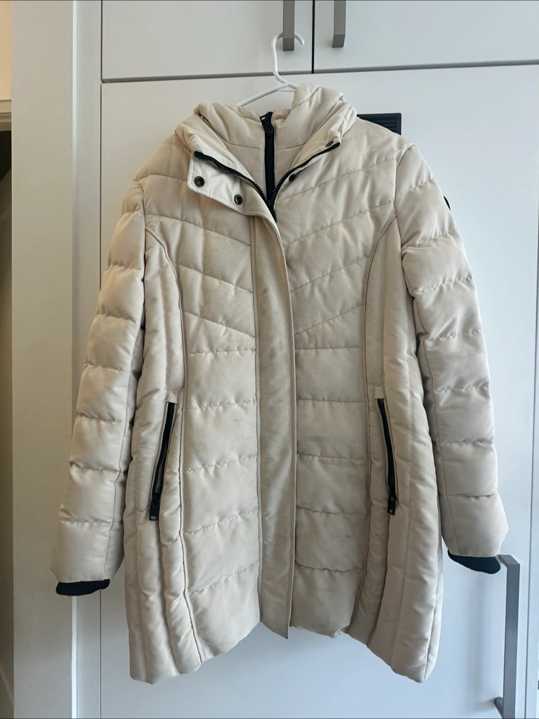 Cozy up in this Point Zero Arnetta Chevron Chic Parka! It's a stylish and warm women's parka in a lovely off-white colour. The size is M. Perfect for those chilly Canadian days! It’s just missing the fur on the head, otherwise it’s in perfect condition and ready for winter.