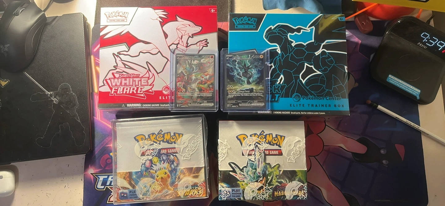 10Everything is either mint or sealed with no rips or tears Feel free to pm for more photos Asking $1900 on the lot Black bolt white flare etb Pokemon centers $500 Zekrom $330 Reshiram $280 Twilight Masquerade booster box $430 Surging sparks booster box $390 Cash preferred but e-transfer accepted Meet up in Vancouver Burnaby, or Surrey on weekends Take trades at 80%